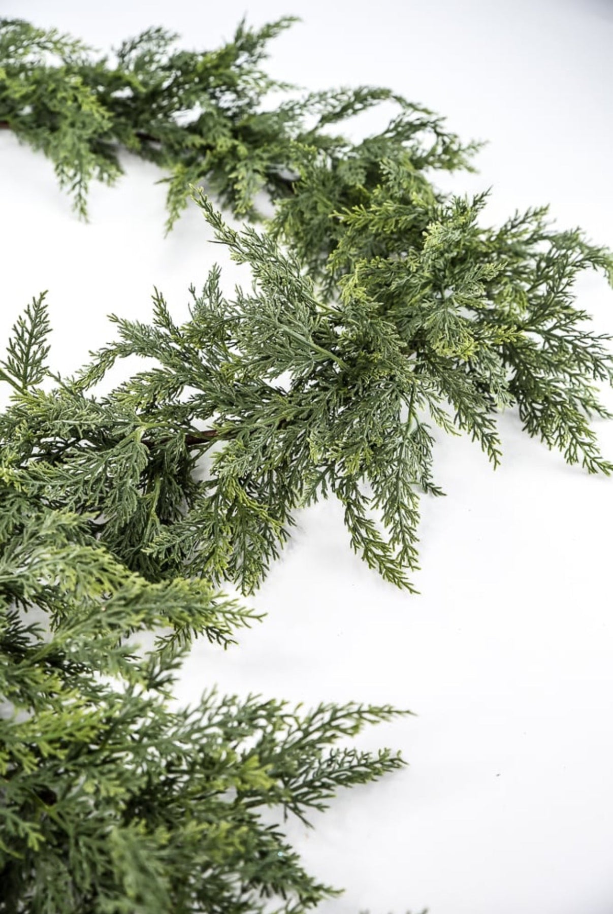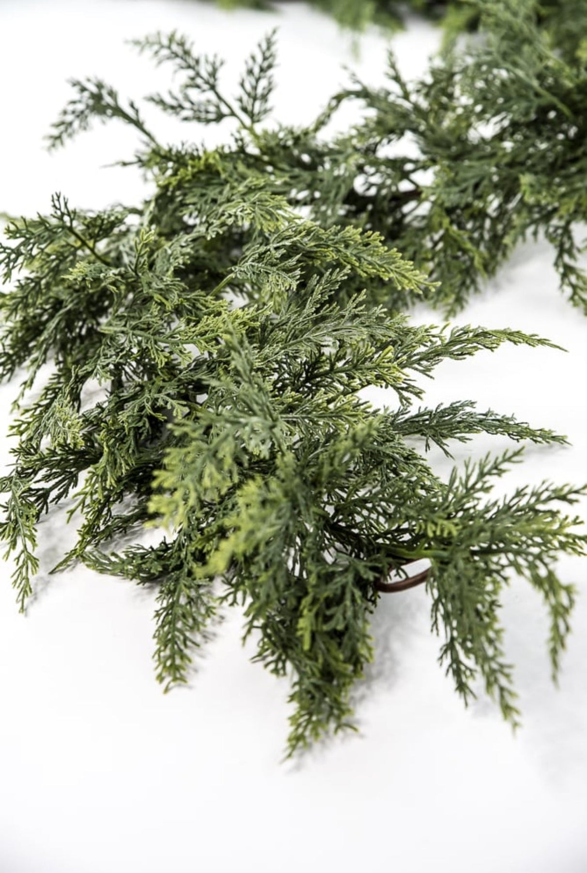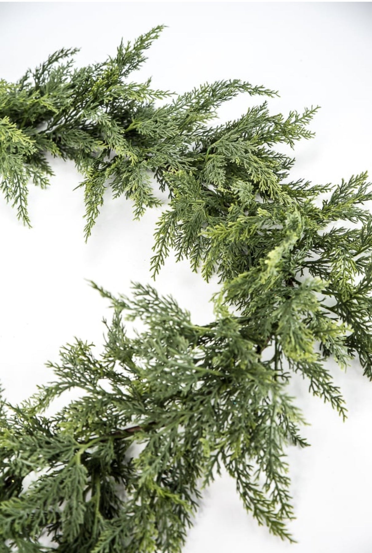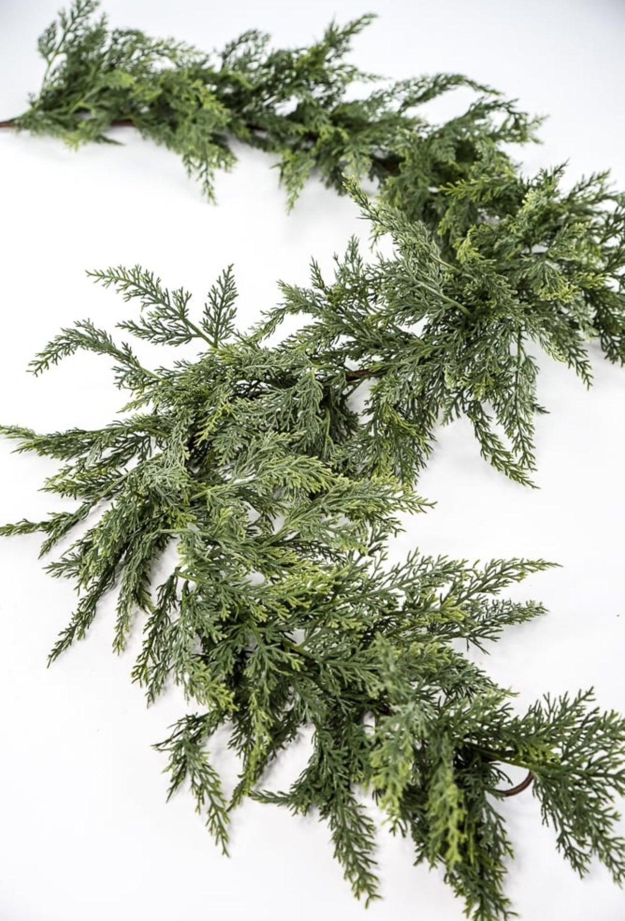 Green soft touch cedar garland. This draping garland has phenomenal wiring for bending and shaping.