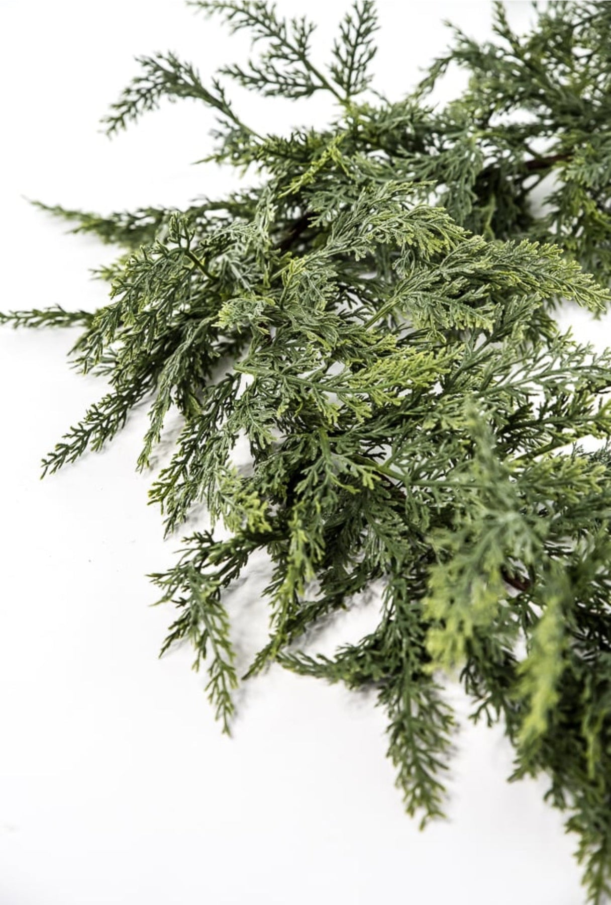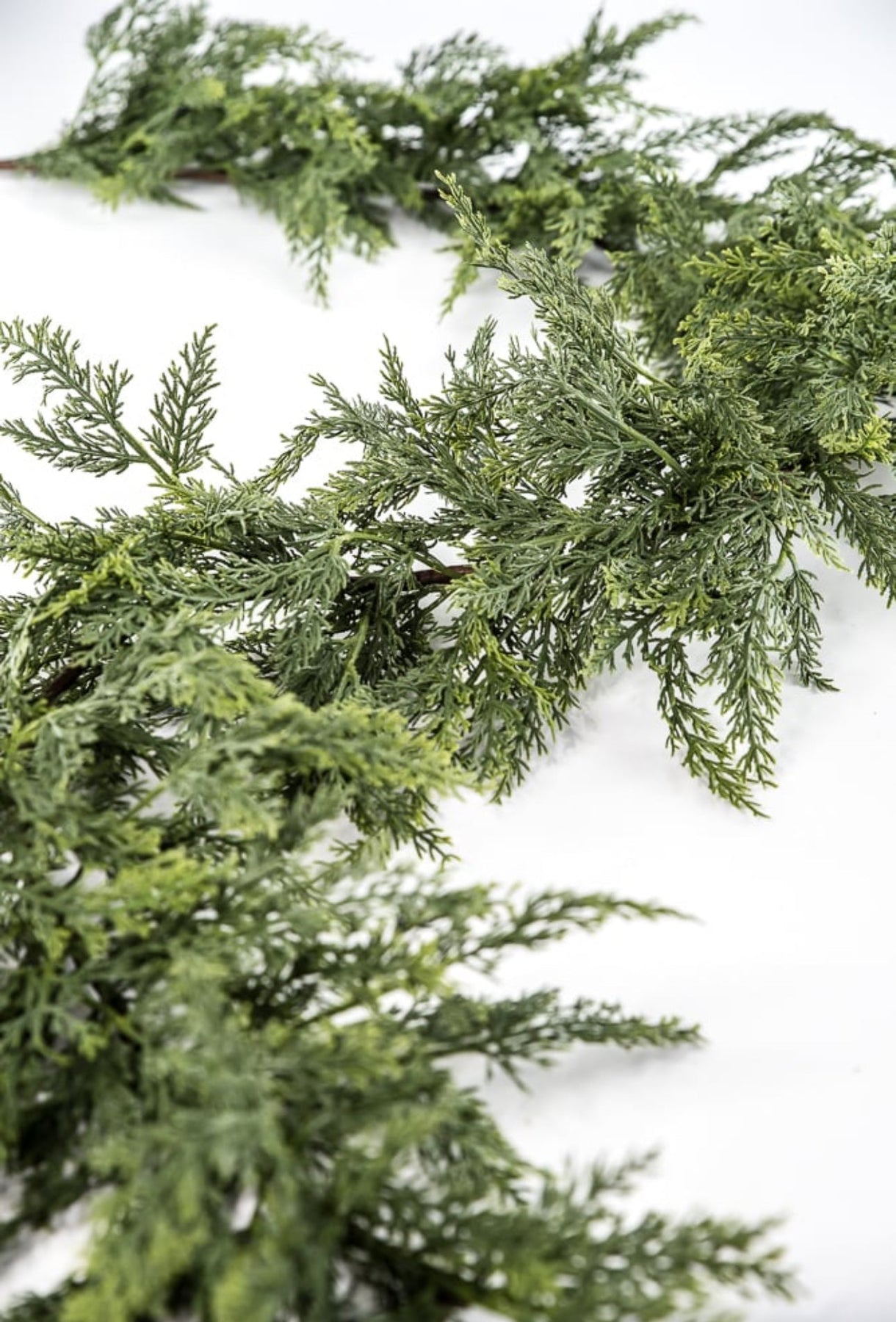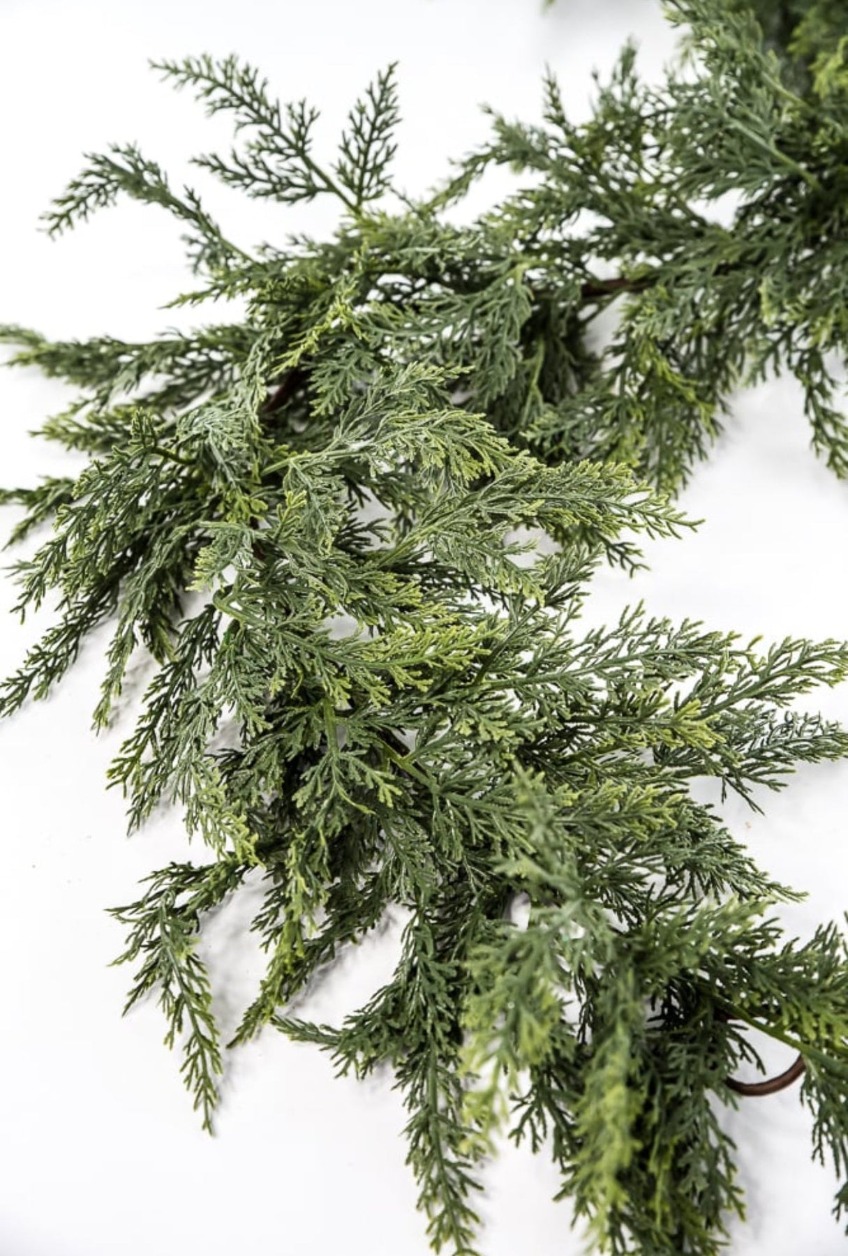 Green soft touch cedar garland. This draping garland has phenomenal wiring for bending and shaping.