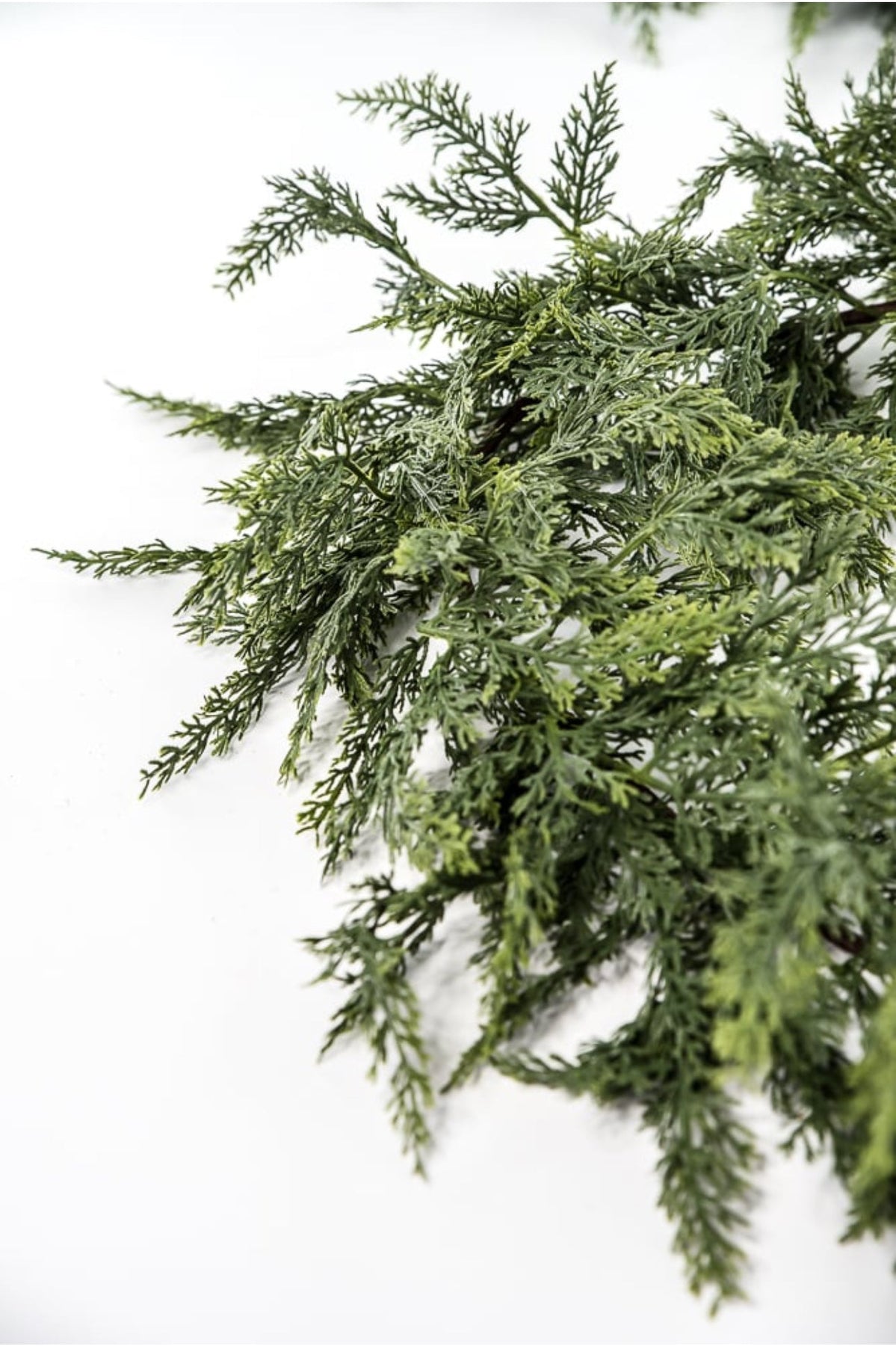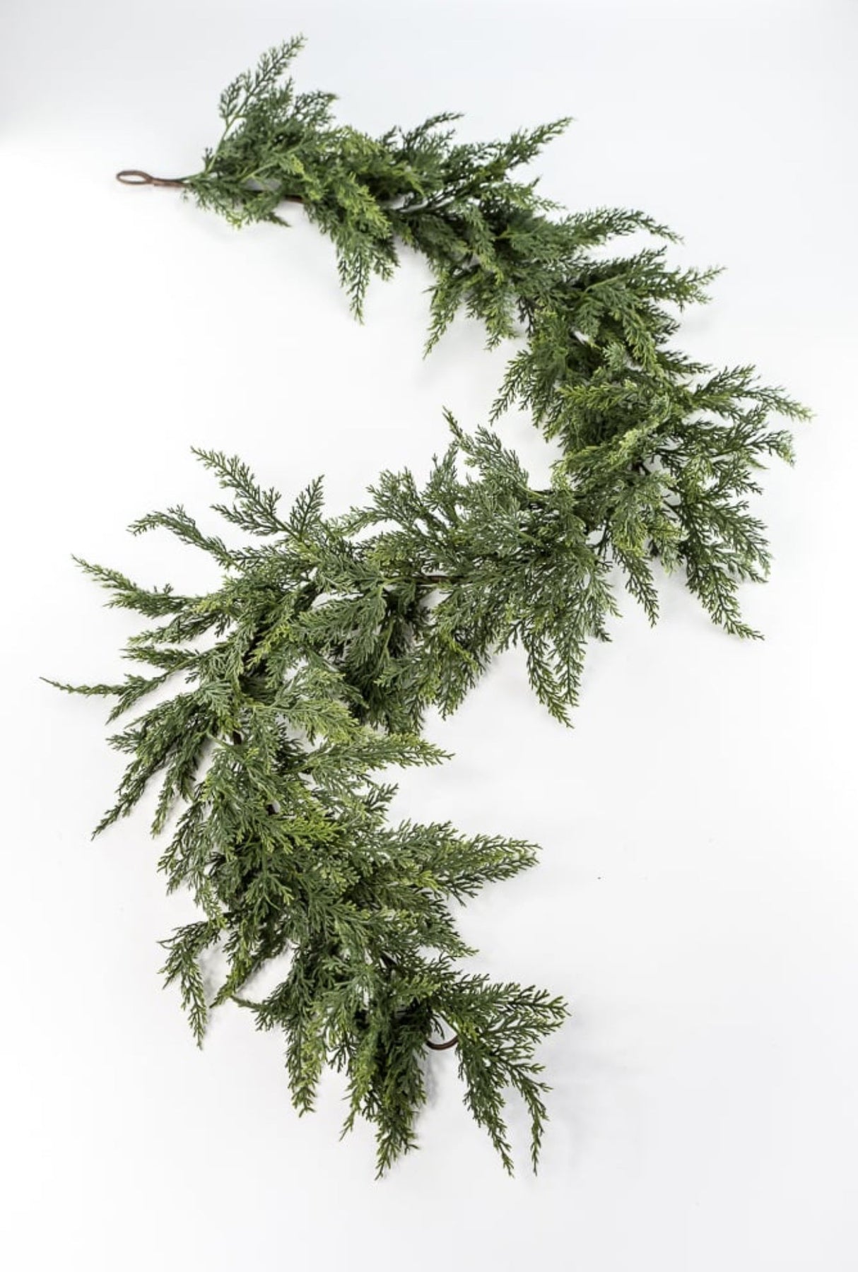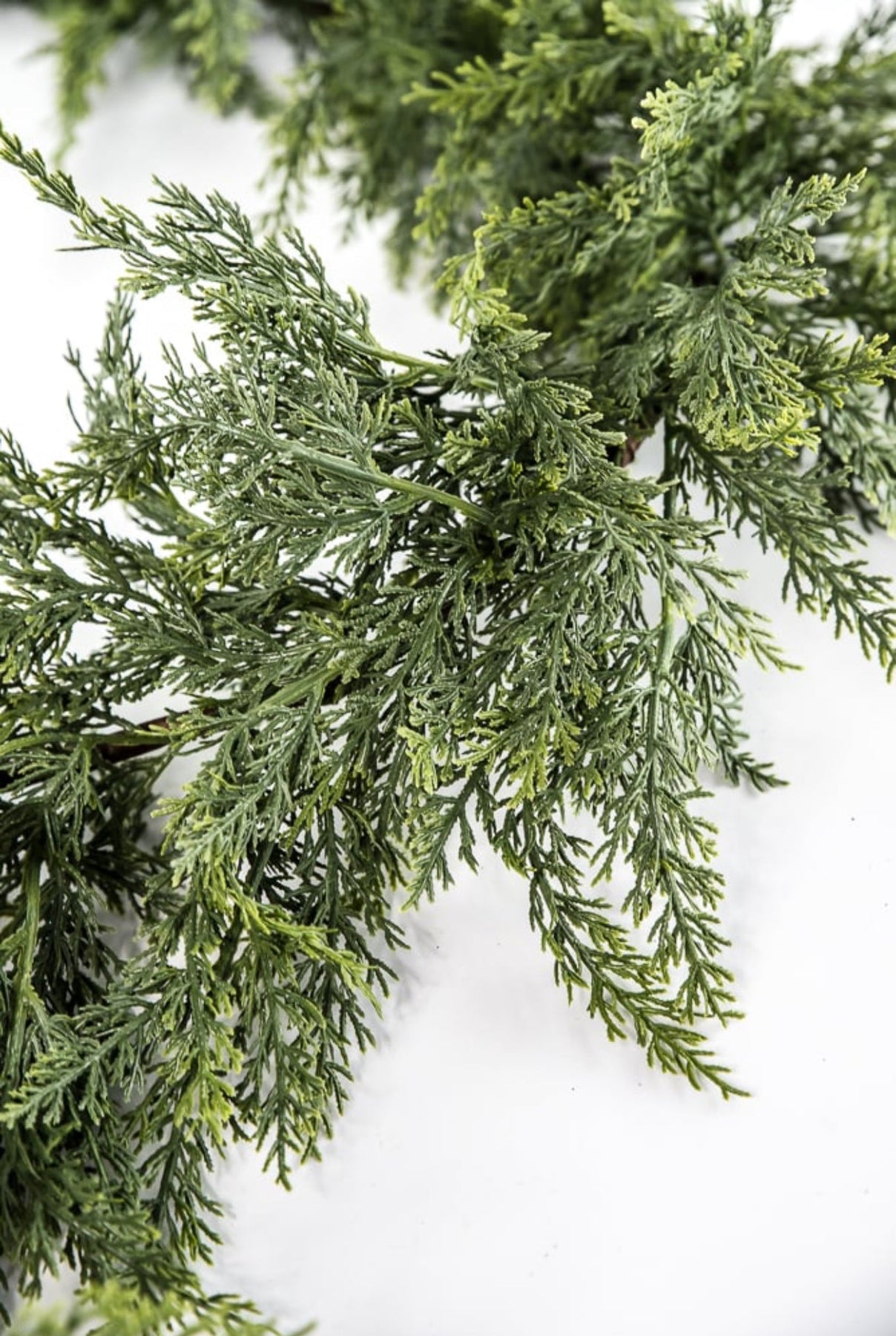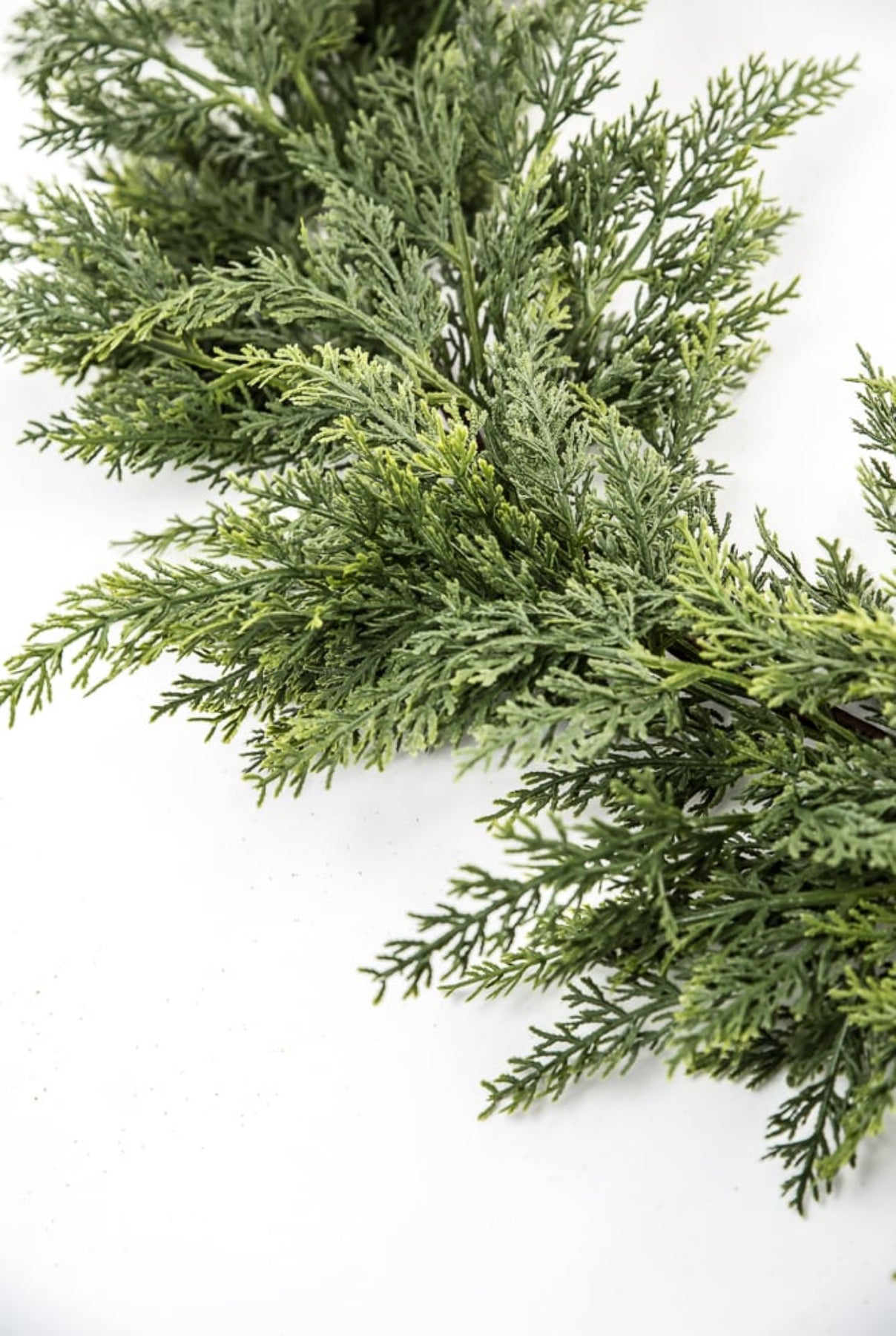 Green soft touch cedar garland. This draping garland has phenomenal wiring for bending and shaping.