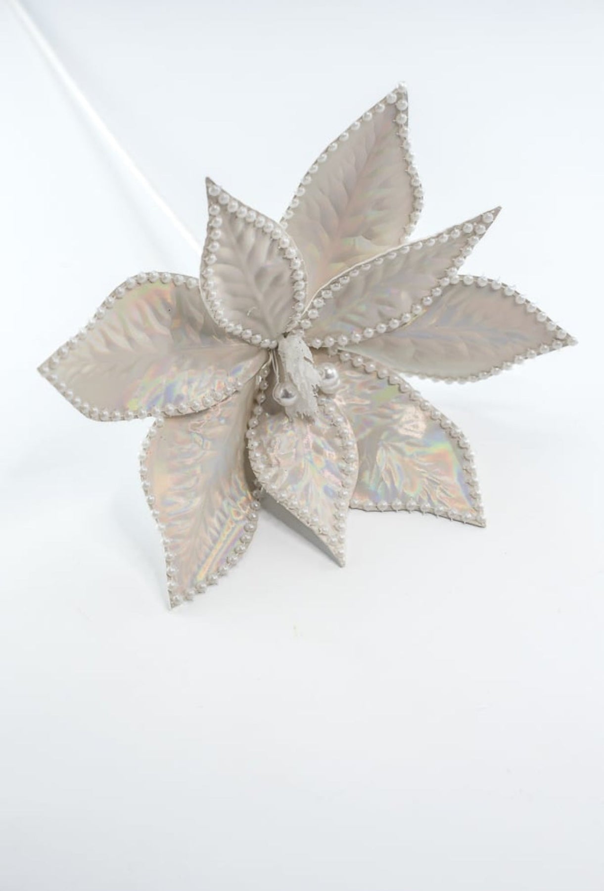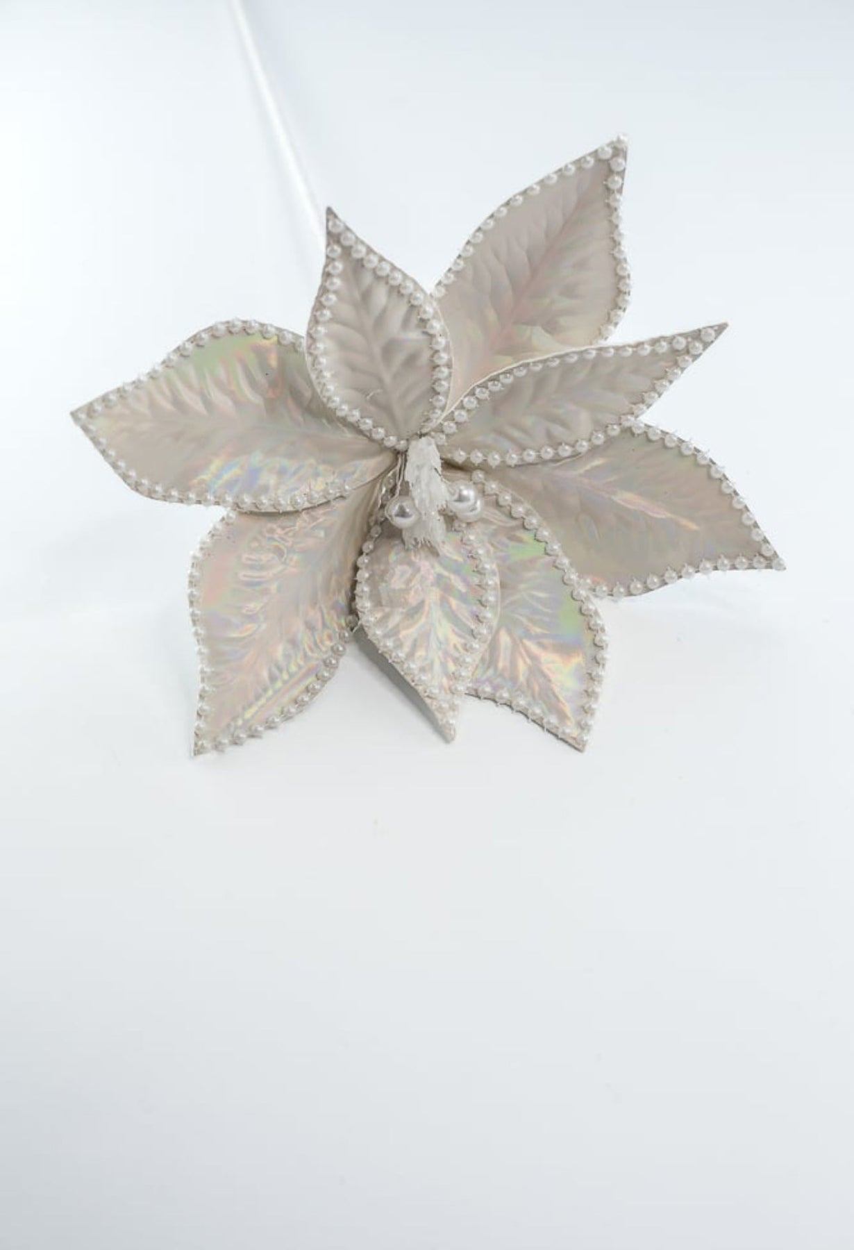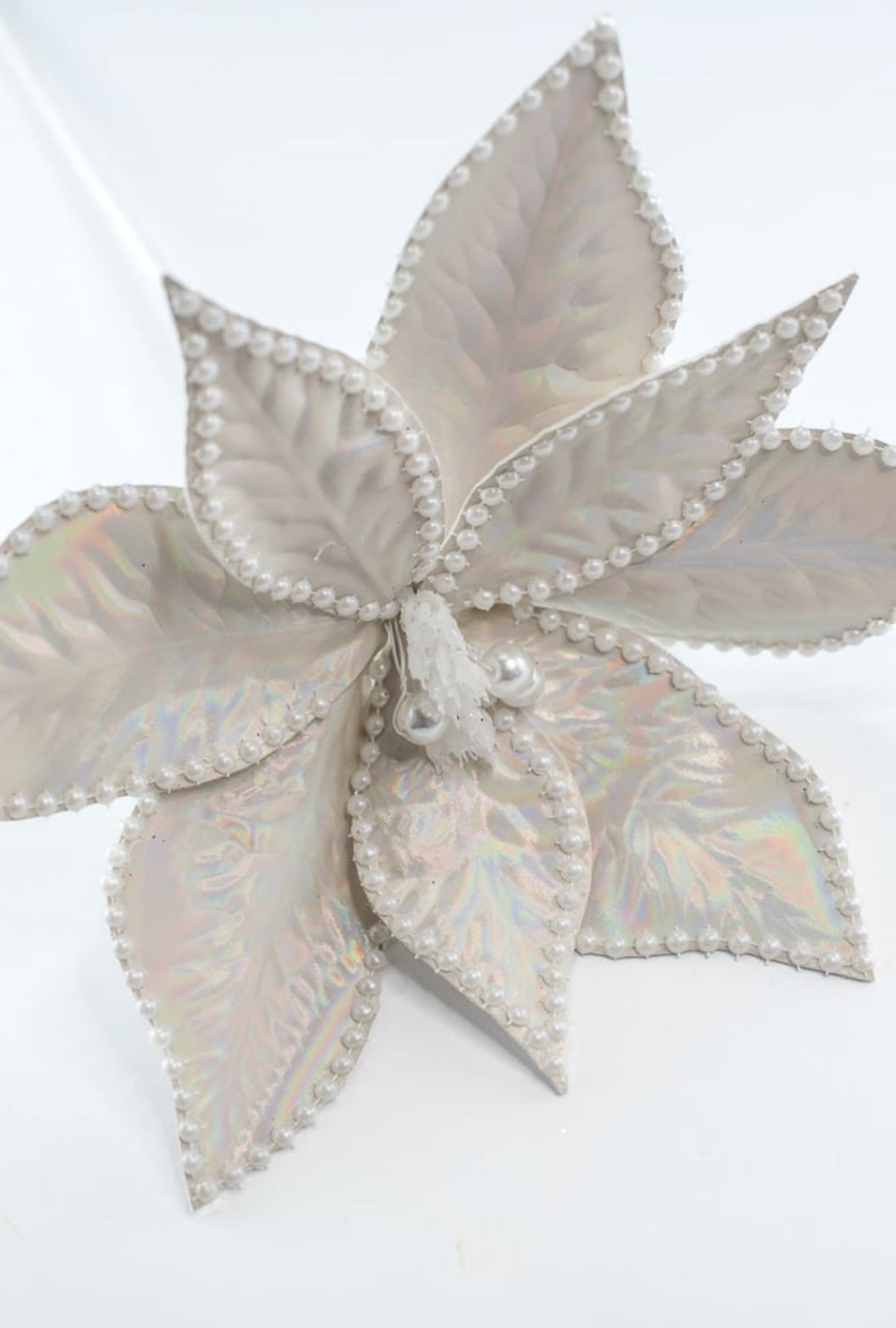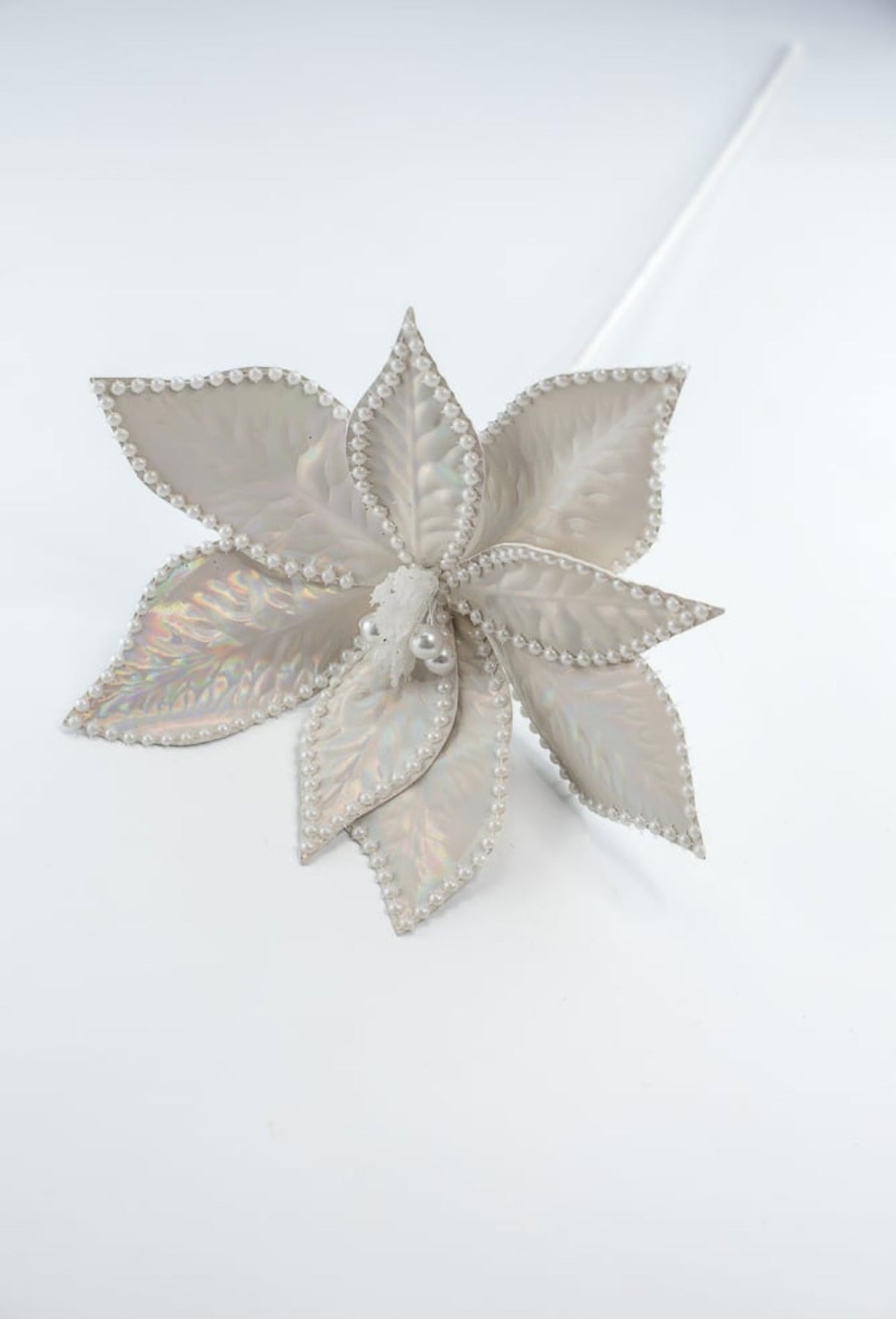 Pearl poinsettias stem with pearled edge and center.