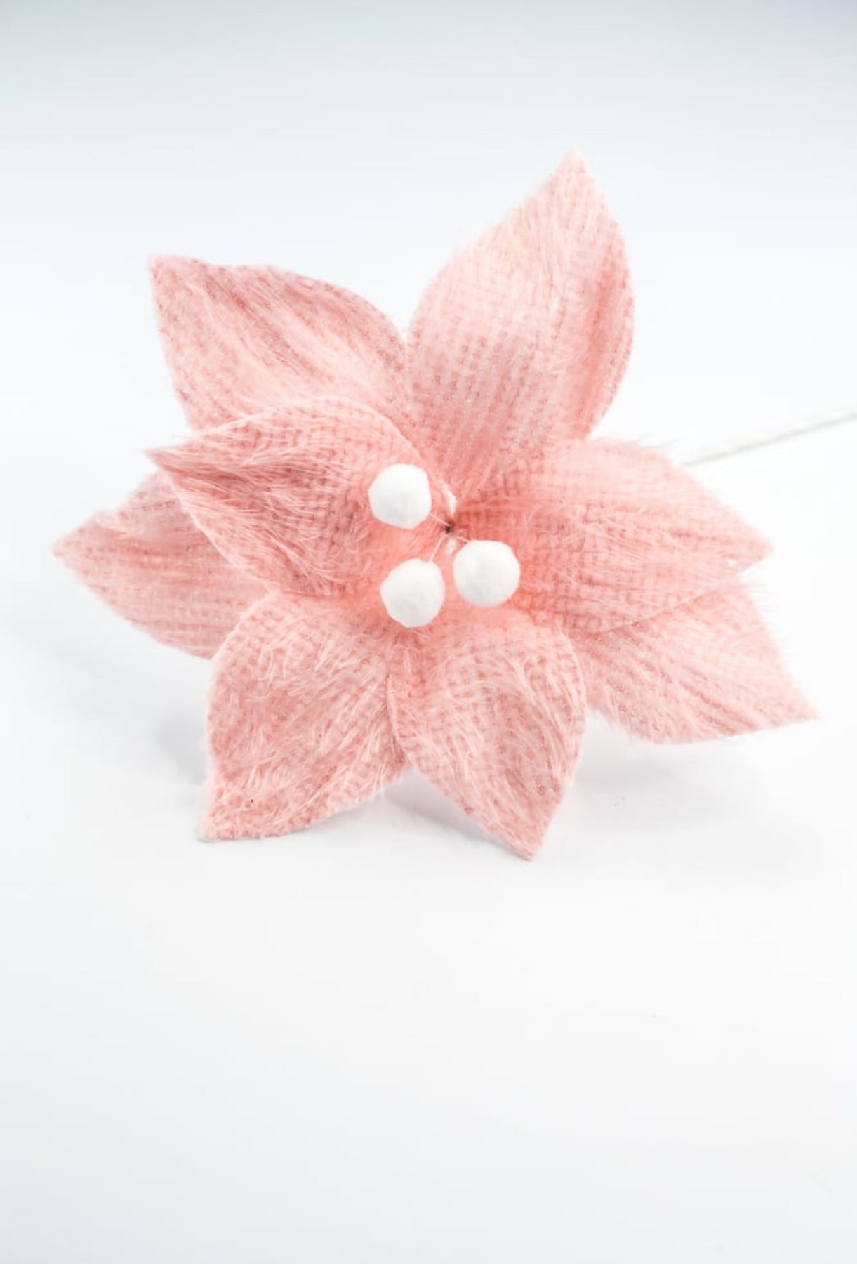 Blush pink faux fur poinsettia stem - Greenery Marketartificial flowers234186