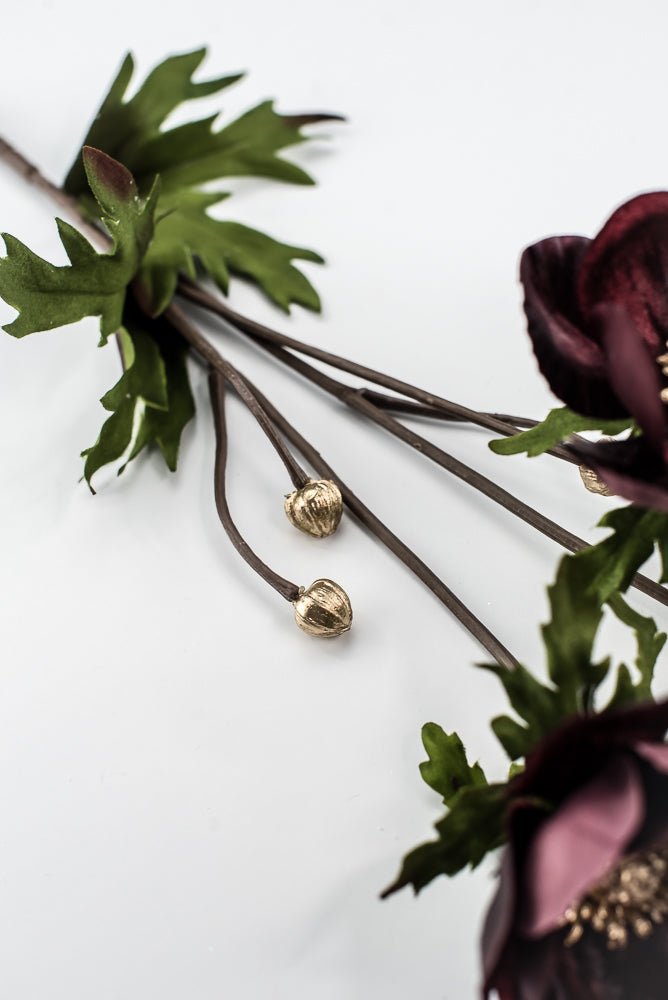 Glamour Velvet Anemone Spray x 3, 29", Burgundy