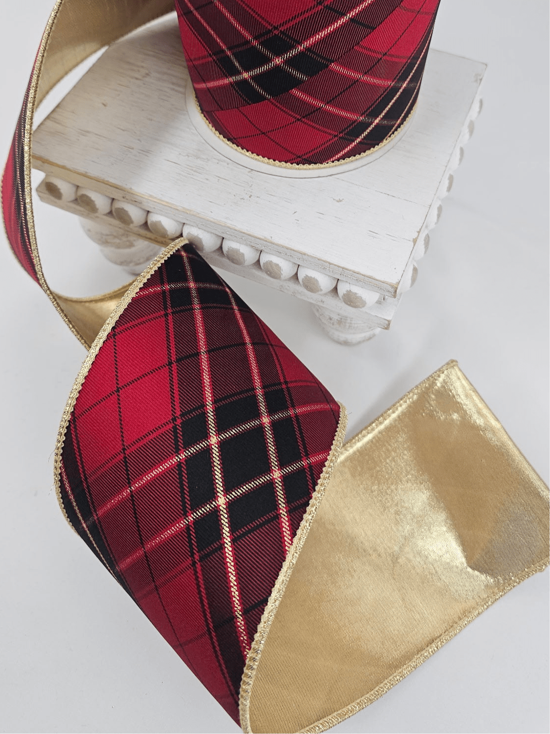 Bias Cut Dbl. Fused Metallic Dupioni Ribbon 4" x 10 yards, Multi Red