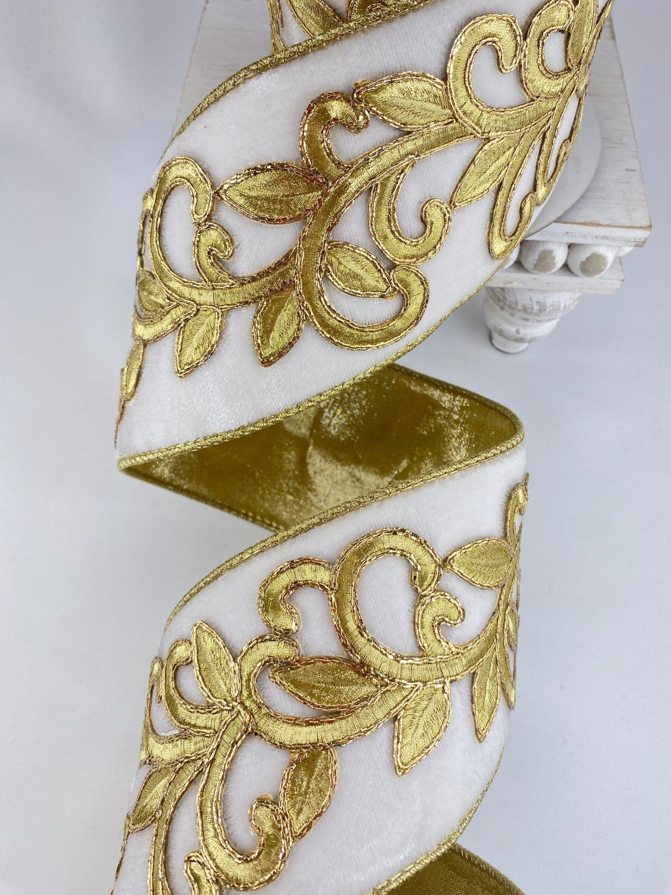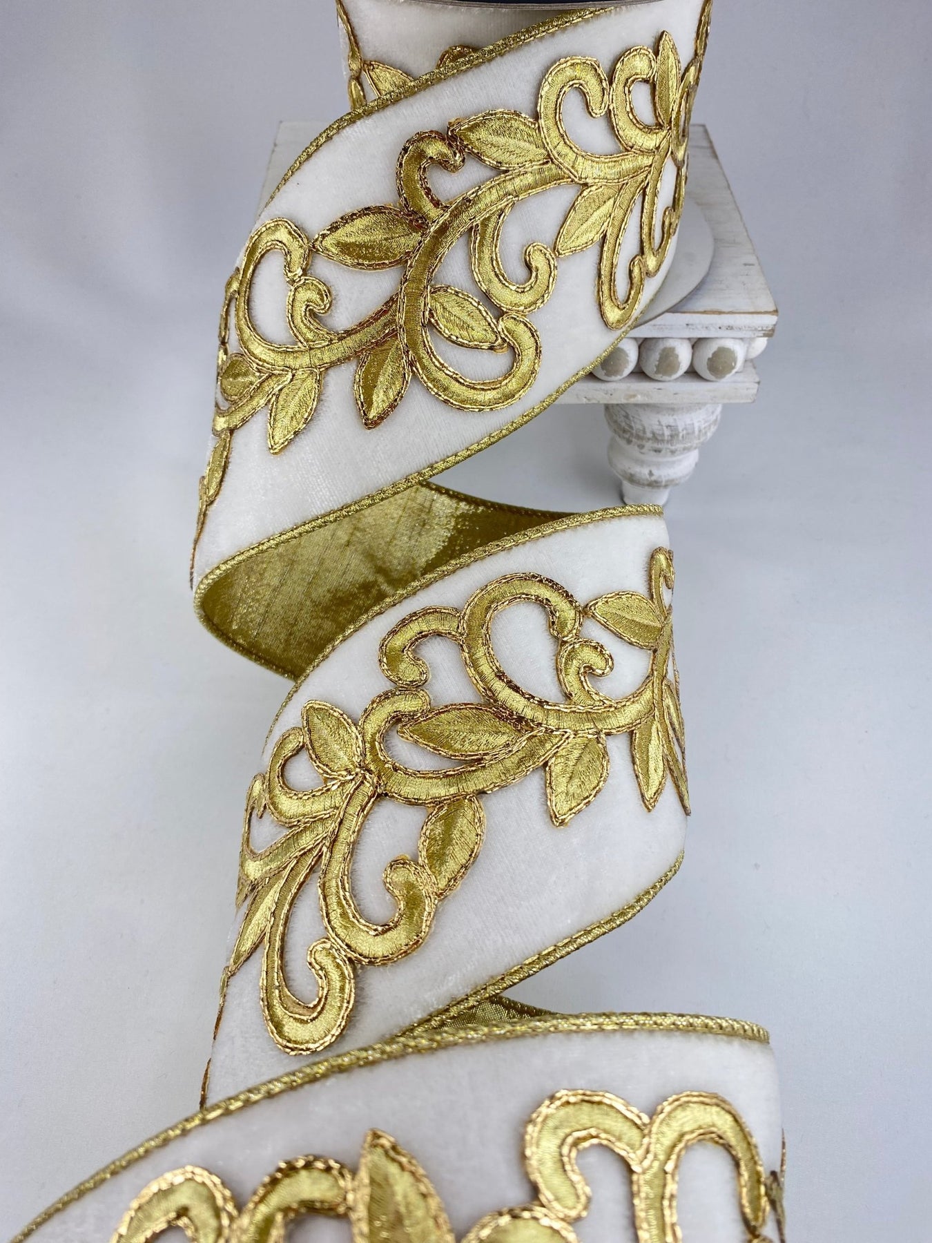 Ivory Royal Embroidery Farrisilk Wired Ribbon - 4" - Greenery MarketRG753 - 62