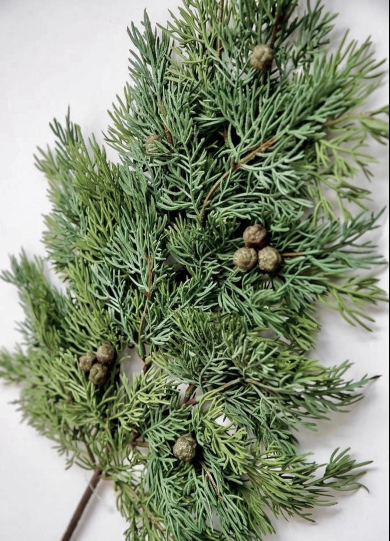 Gorgeous soft cypress spray for winter decorating and designing. Cedar and baby cone spray