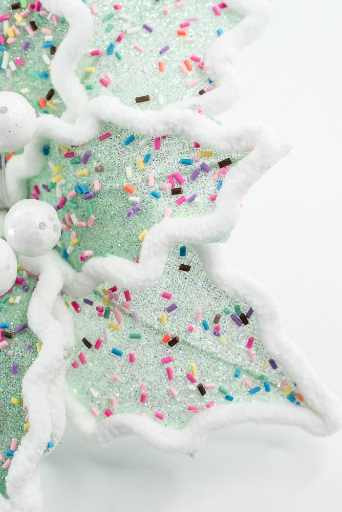 25" Light Minty Blue Confetti Sprinkled Poinsettia Stem