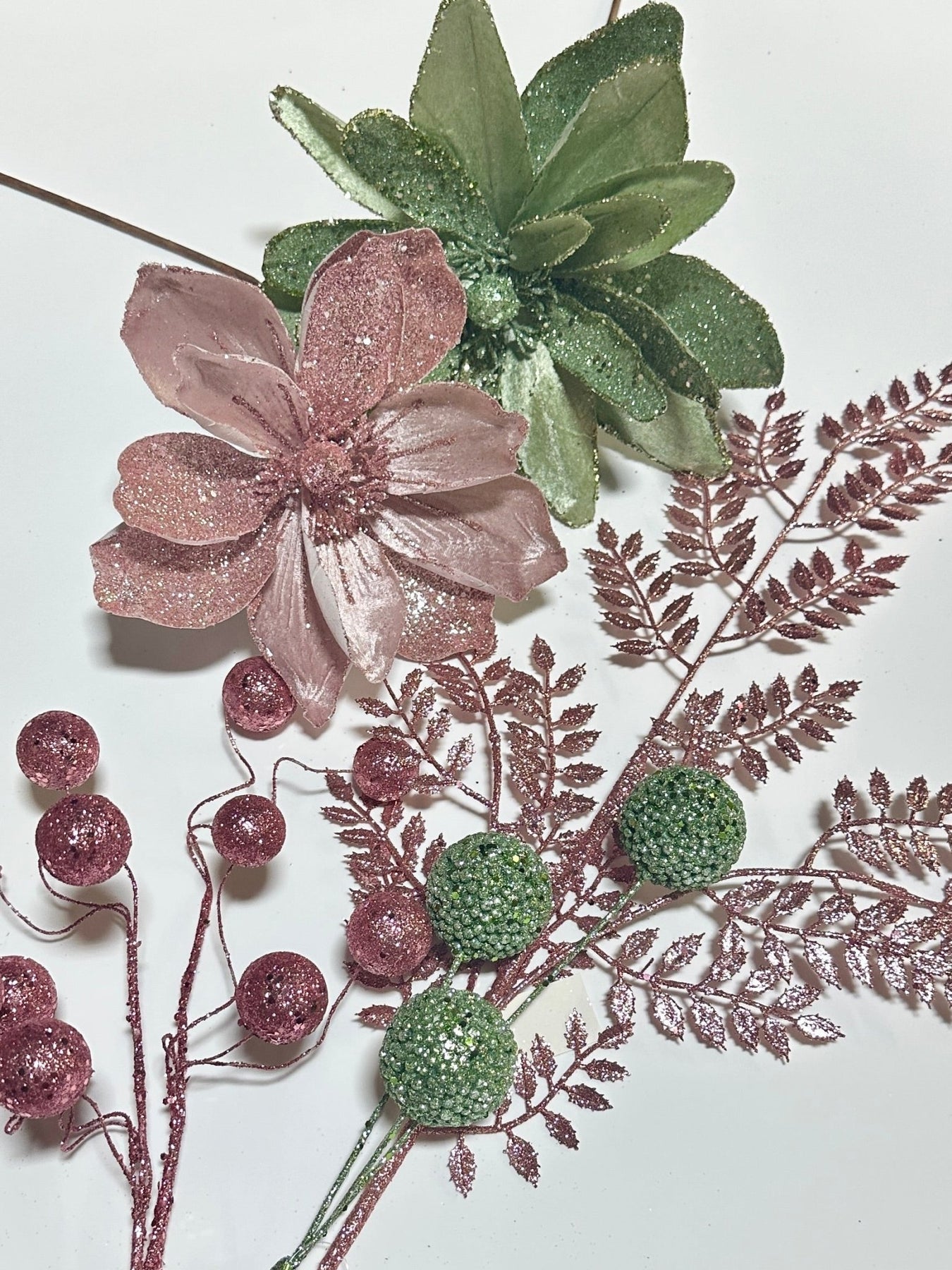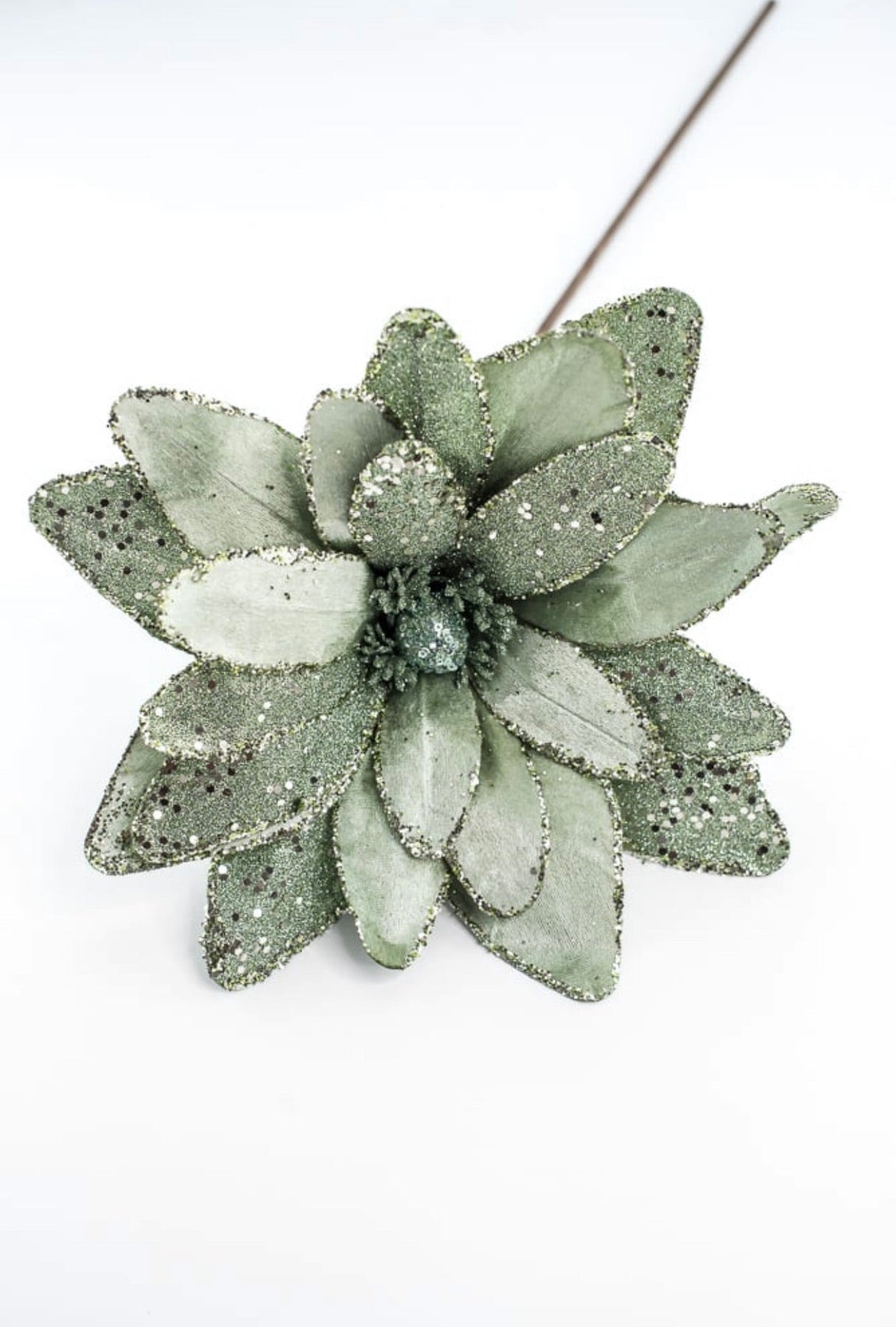 Green velvet and glitter poinsettia stem - Greenery MarketGF2712GR