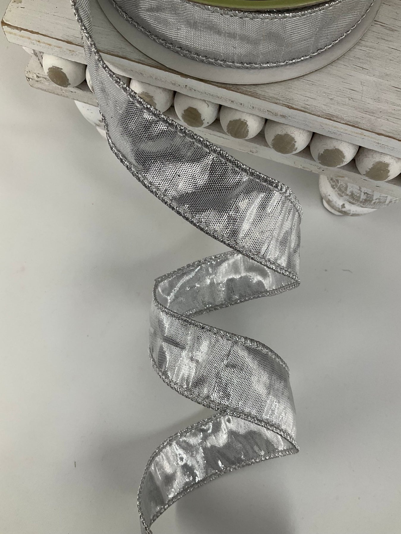 Silver Metallic Dupion Wired Ribbon - 1" - Greenery MarketRM0825-SI