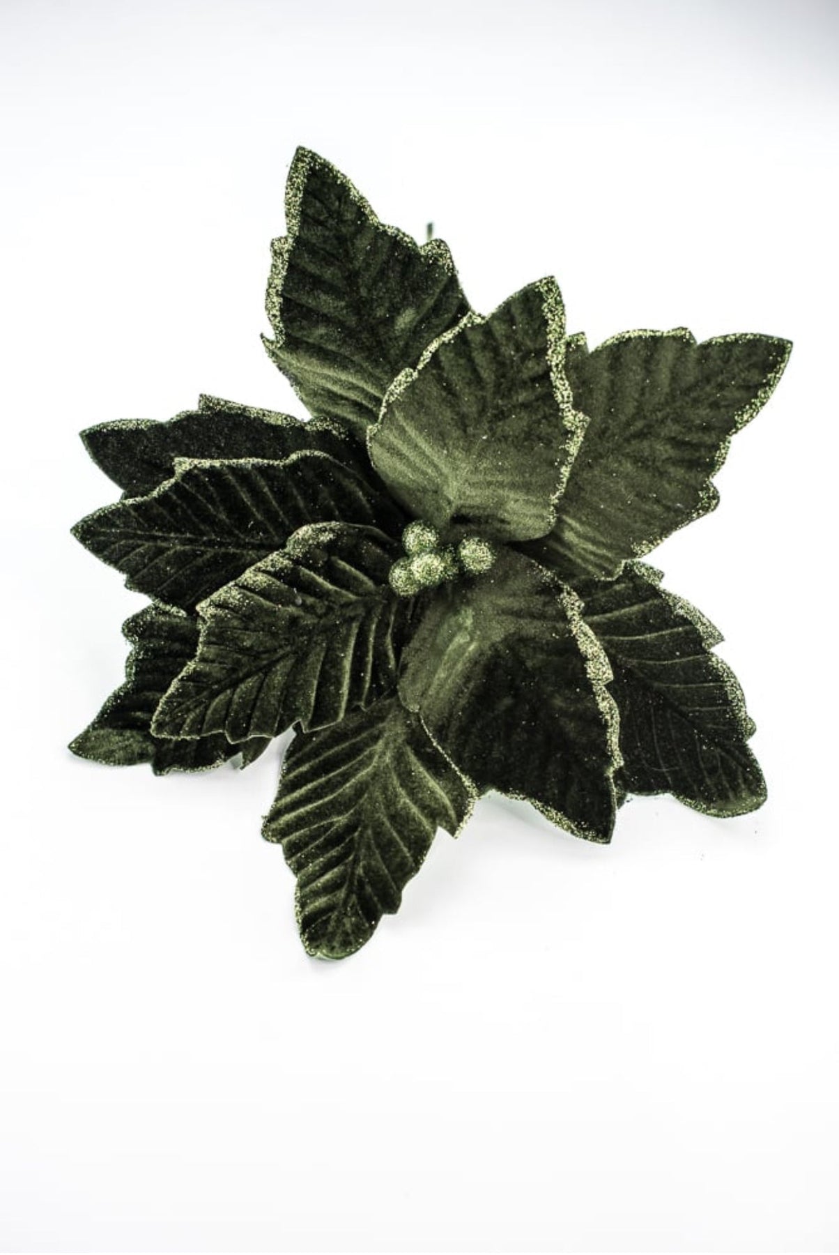 Dark green velvet poinsettia stem / pick