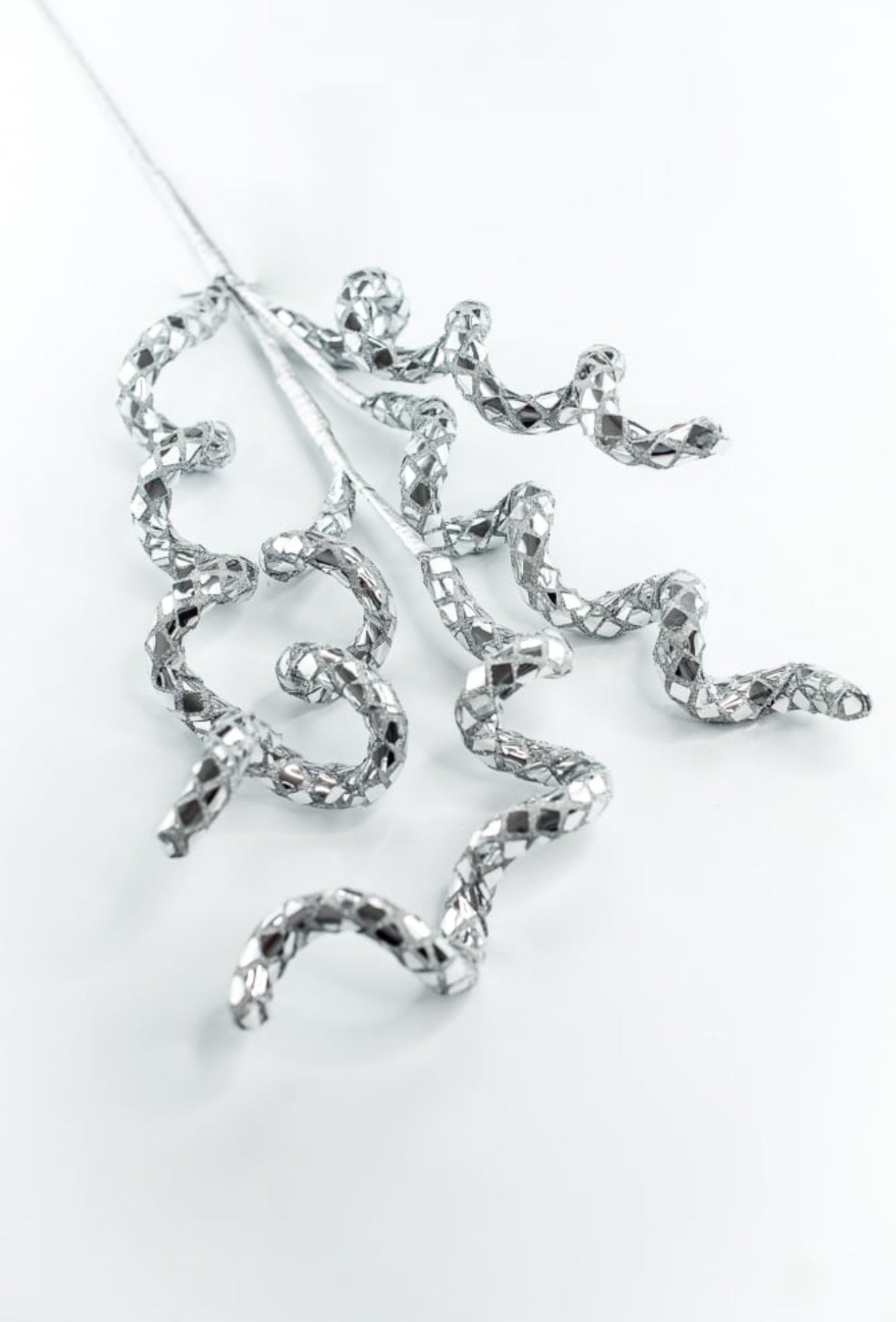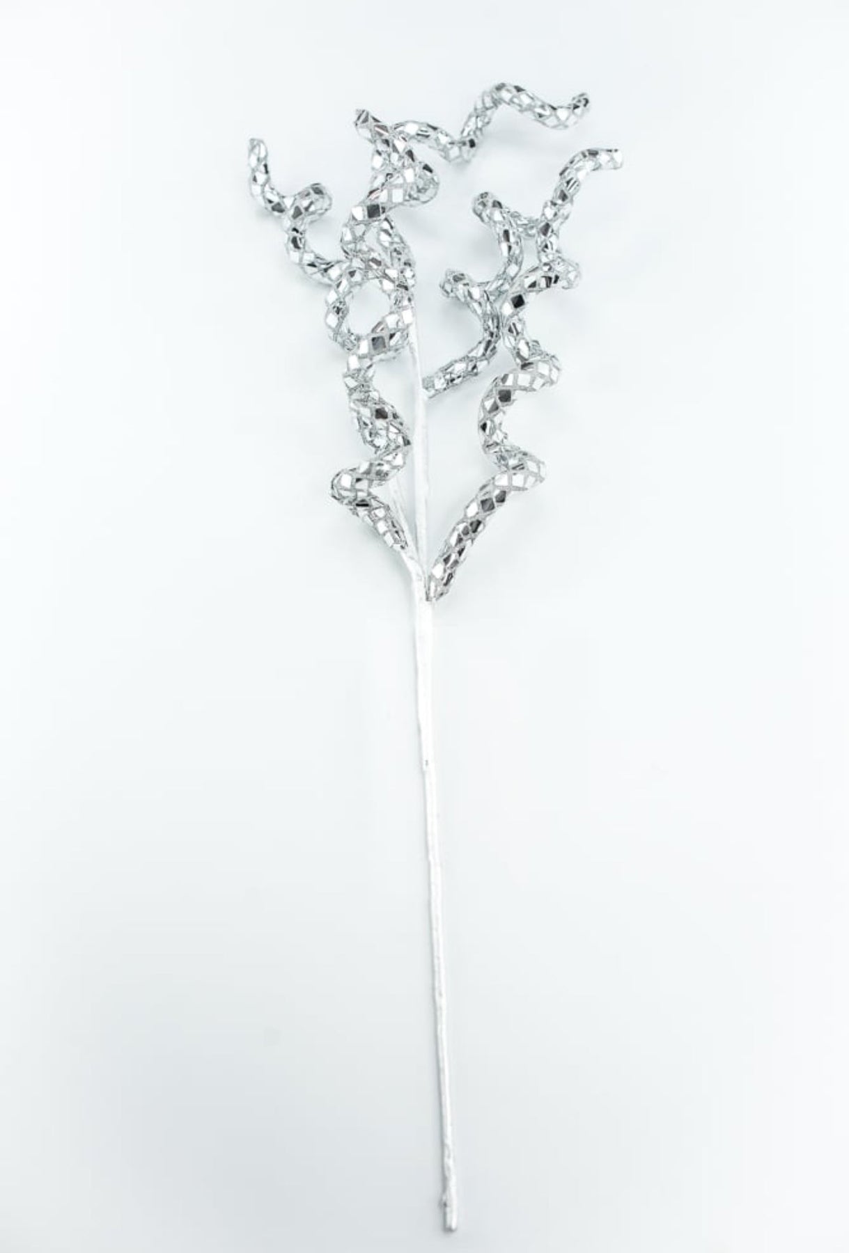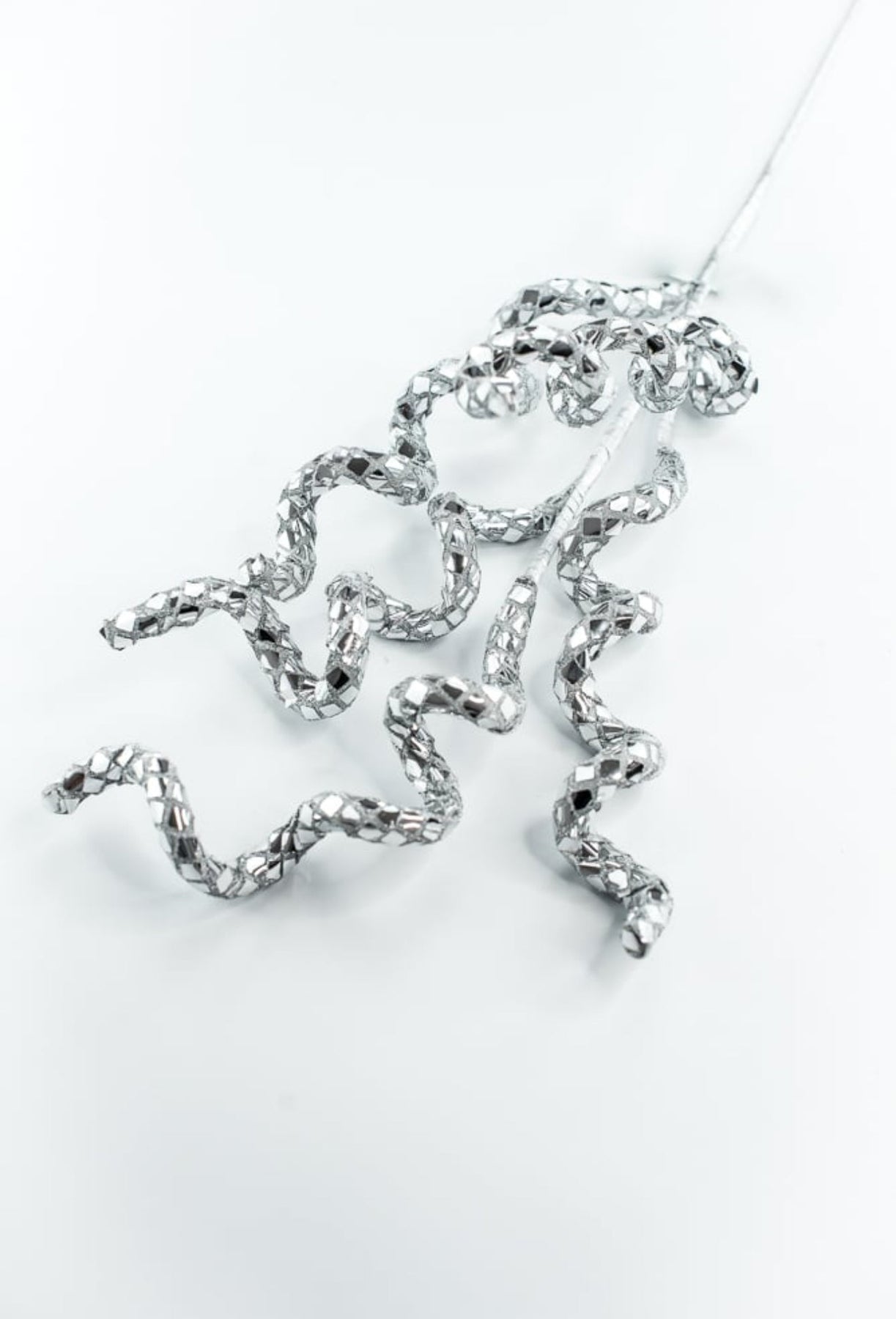 Silver Disco Frizzy Curly Spray. 5 Wired stems.
