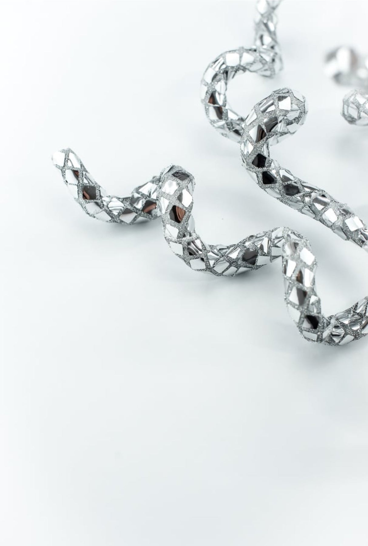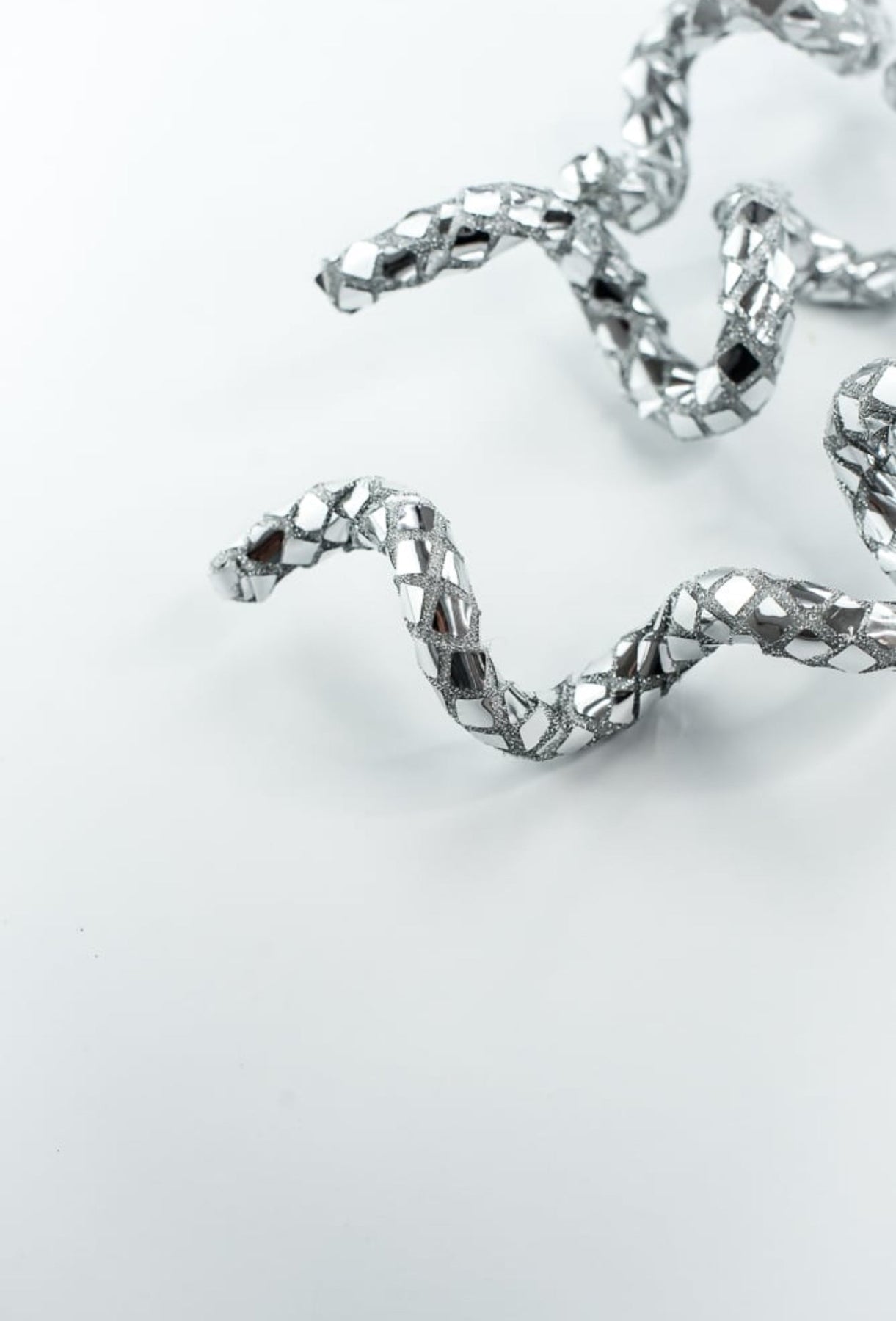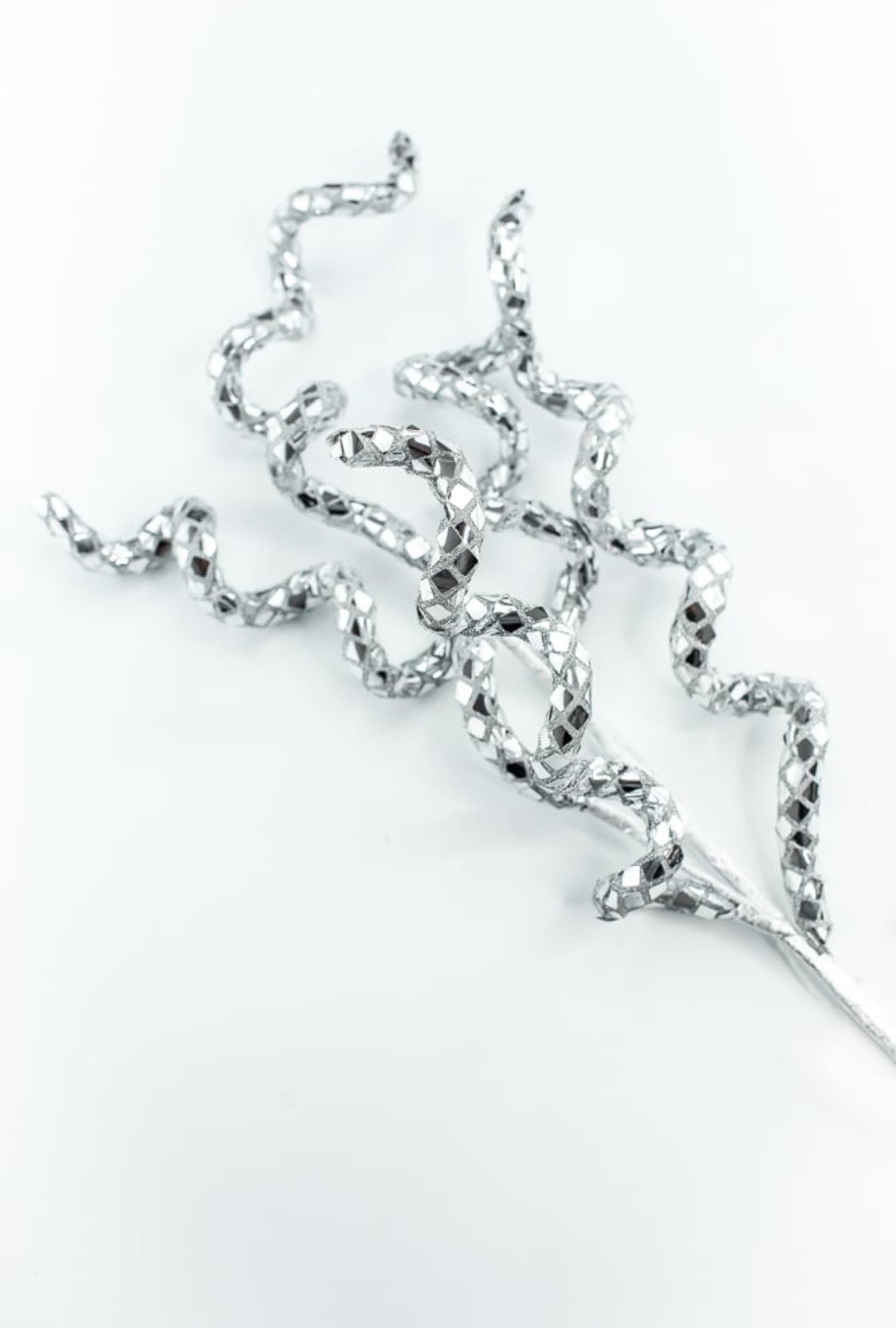Silver Disco Frizzy Curly Spray. 5 Wired stems.