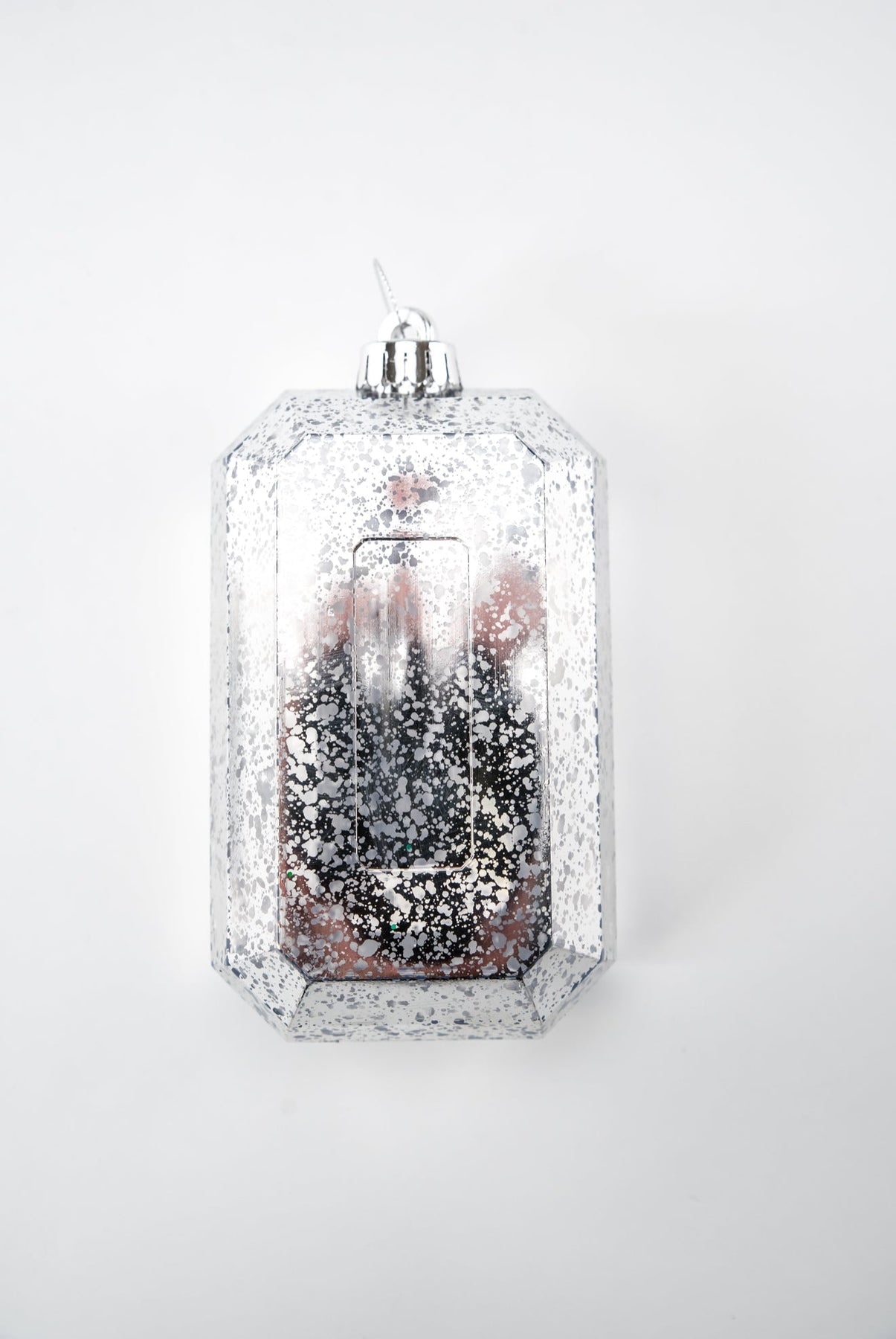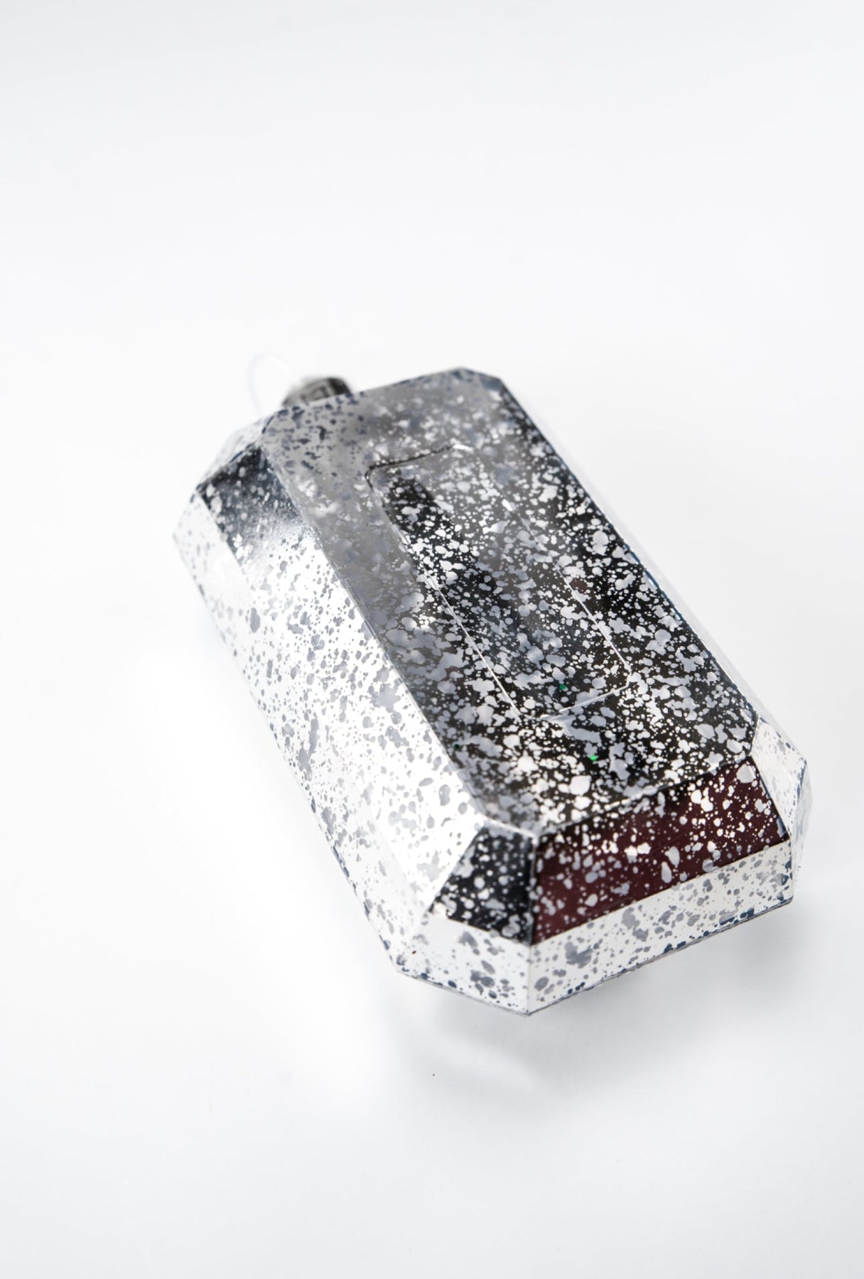 Antique mercury look, rectangle gem, silver, jewel ornament