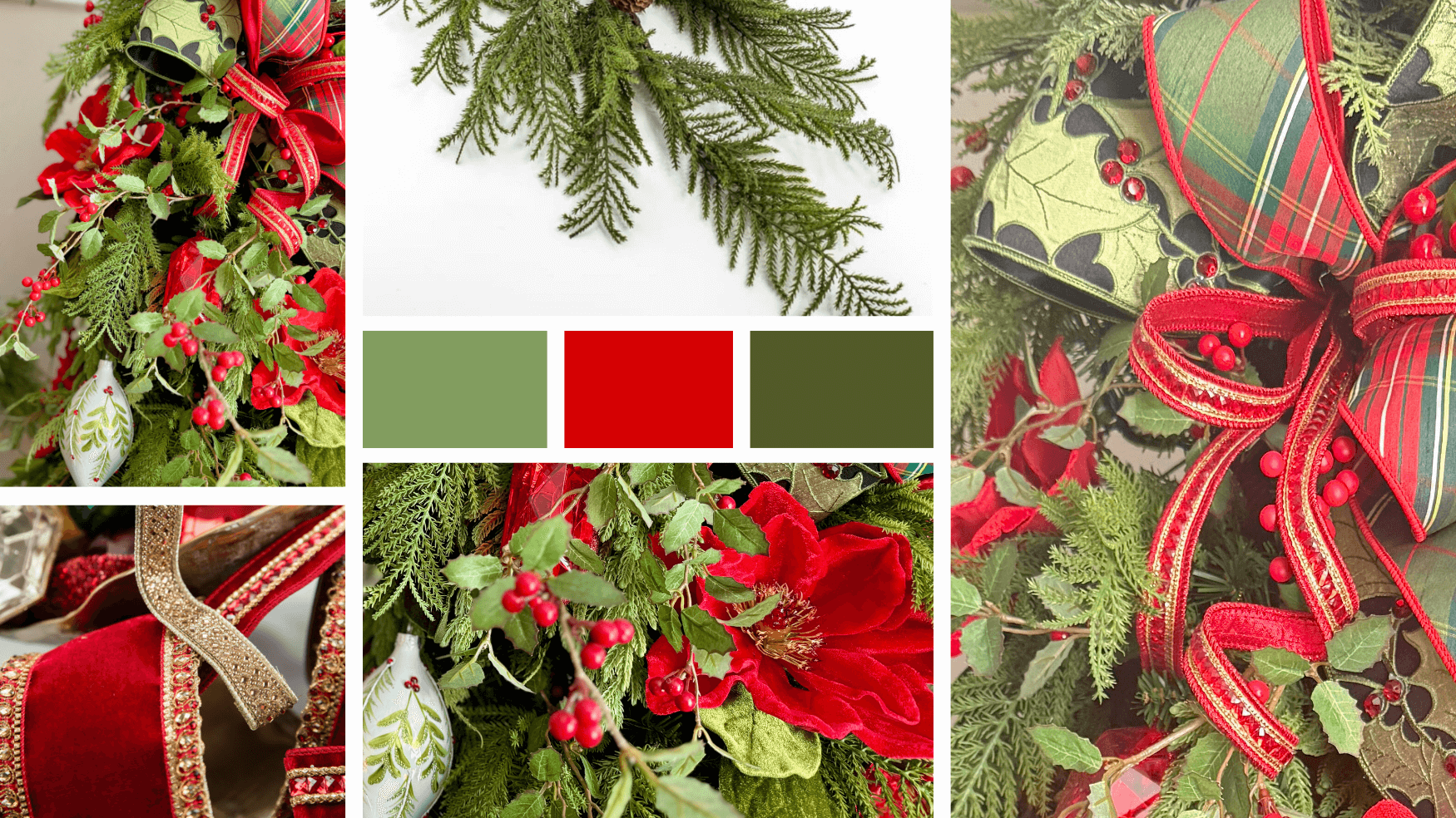 Shop this Holly Jolly Jewels collection for classic holiday decor in festive red and green. Discover timeless sparkling ribbons, traditional Christmas florals, and lush faux greenery perfect for creating beautiful wreaths and garlands.