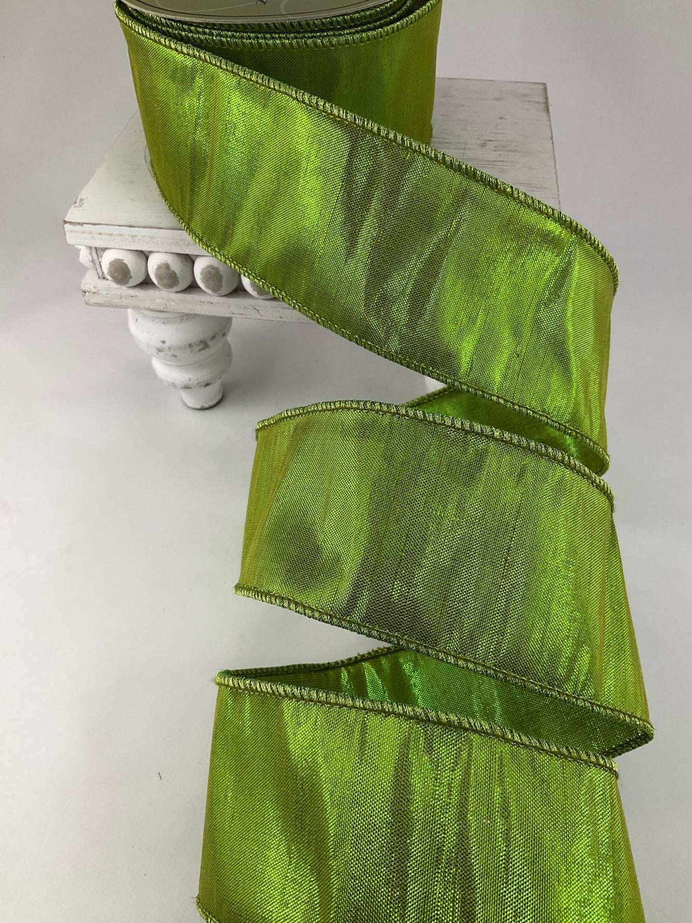 Lime Green Metallic Dupion Wired Ribbon - 2.5"