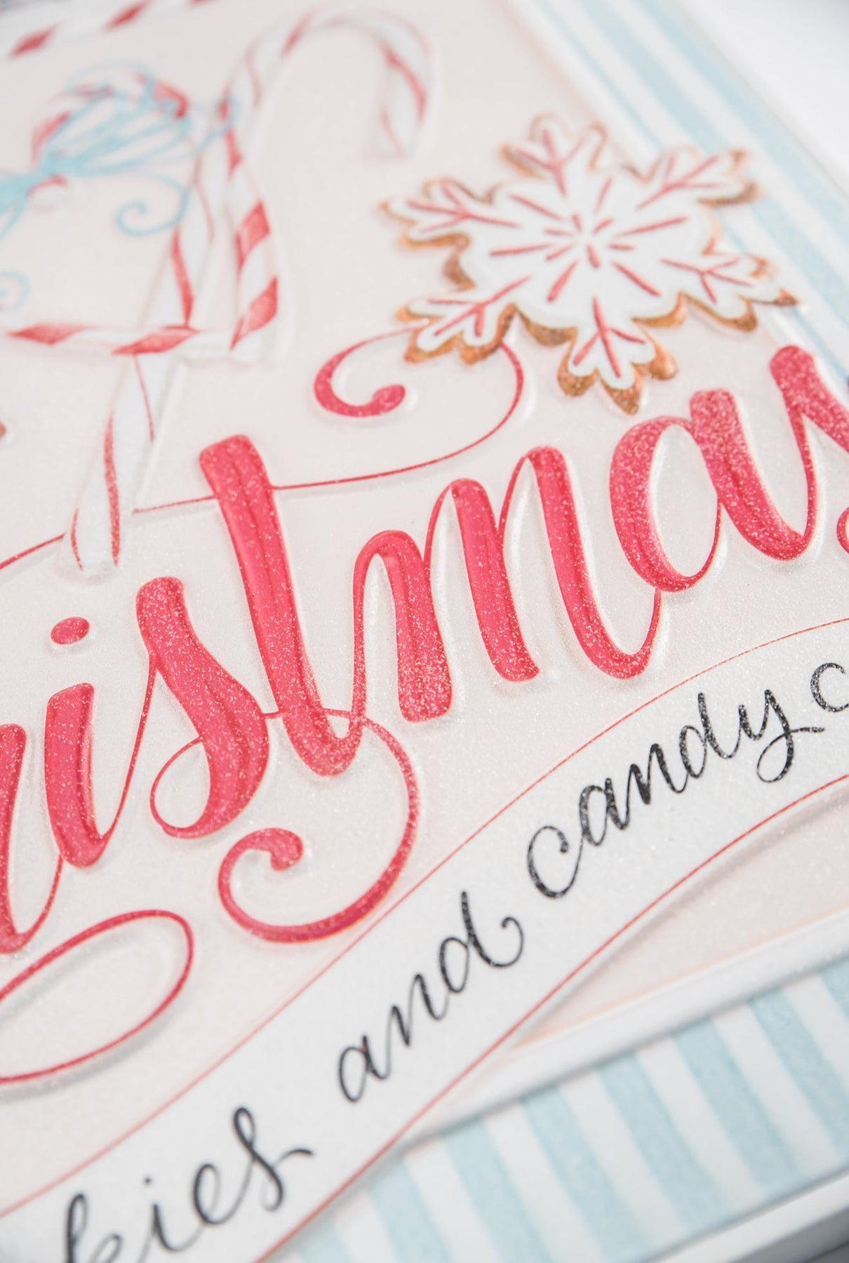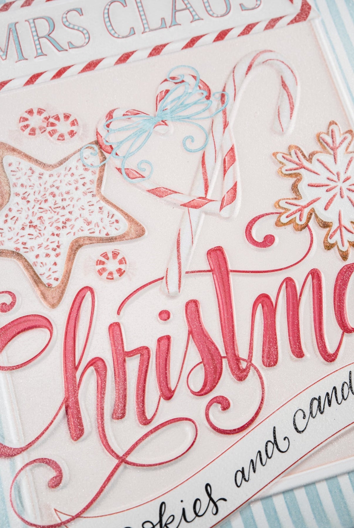 Raz peppermint Mrs Claus cookie embossed wall sign. Covered is dusting of “sugar” aka shimmer.