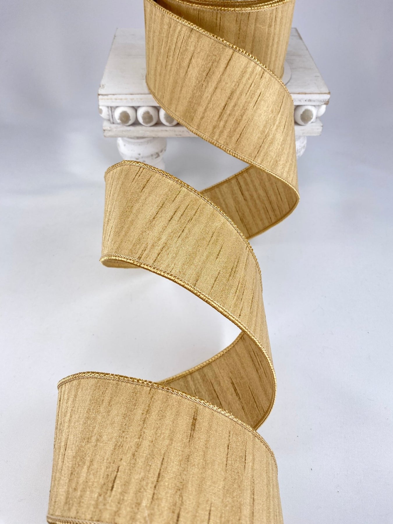 Gold Shimmering Thread, Silk Farrisilk Wired Ribbon