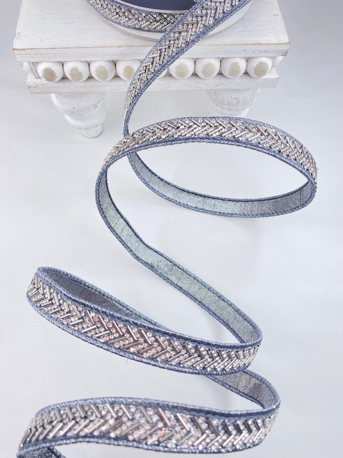Pewter Chevron Crystal Trim Farrisilk Wired Ribbon