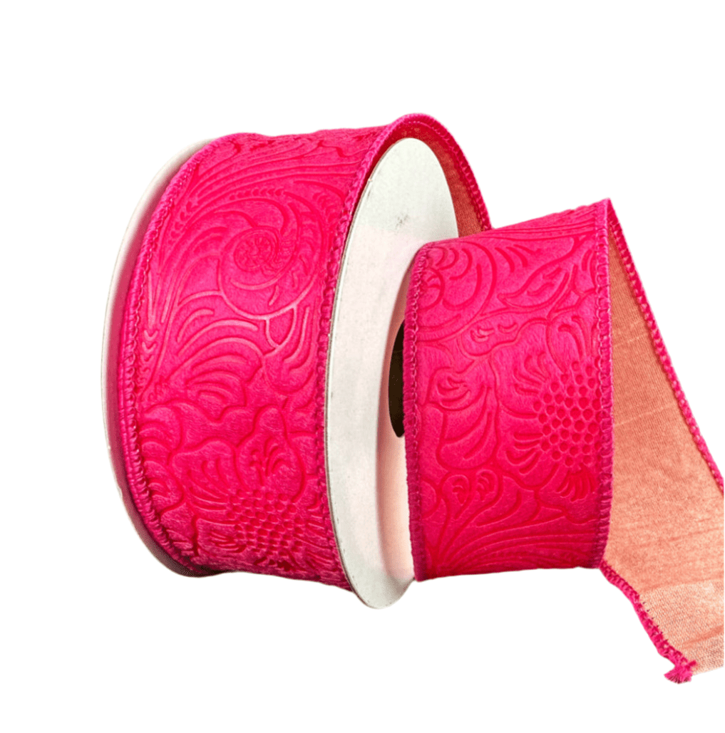 Hot pink embossed 1.5” wired x 10 yards