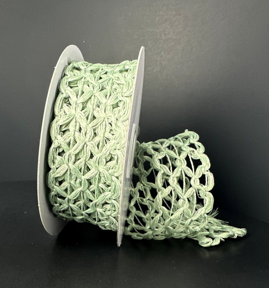Creamy mint green textured mesh wired ribbon for DIY bows and wreath making.