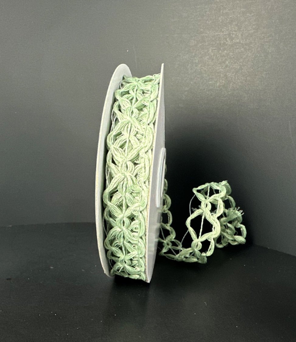 Minty jute squiggle open weave wired ribbon, 7/8"