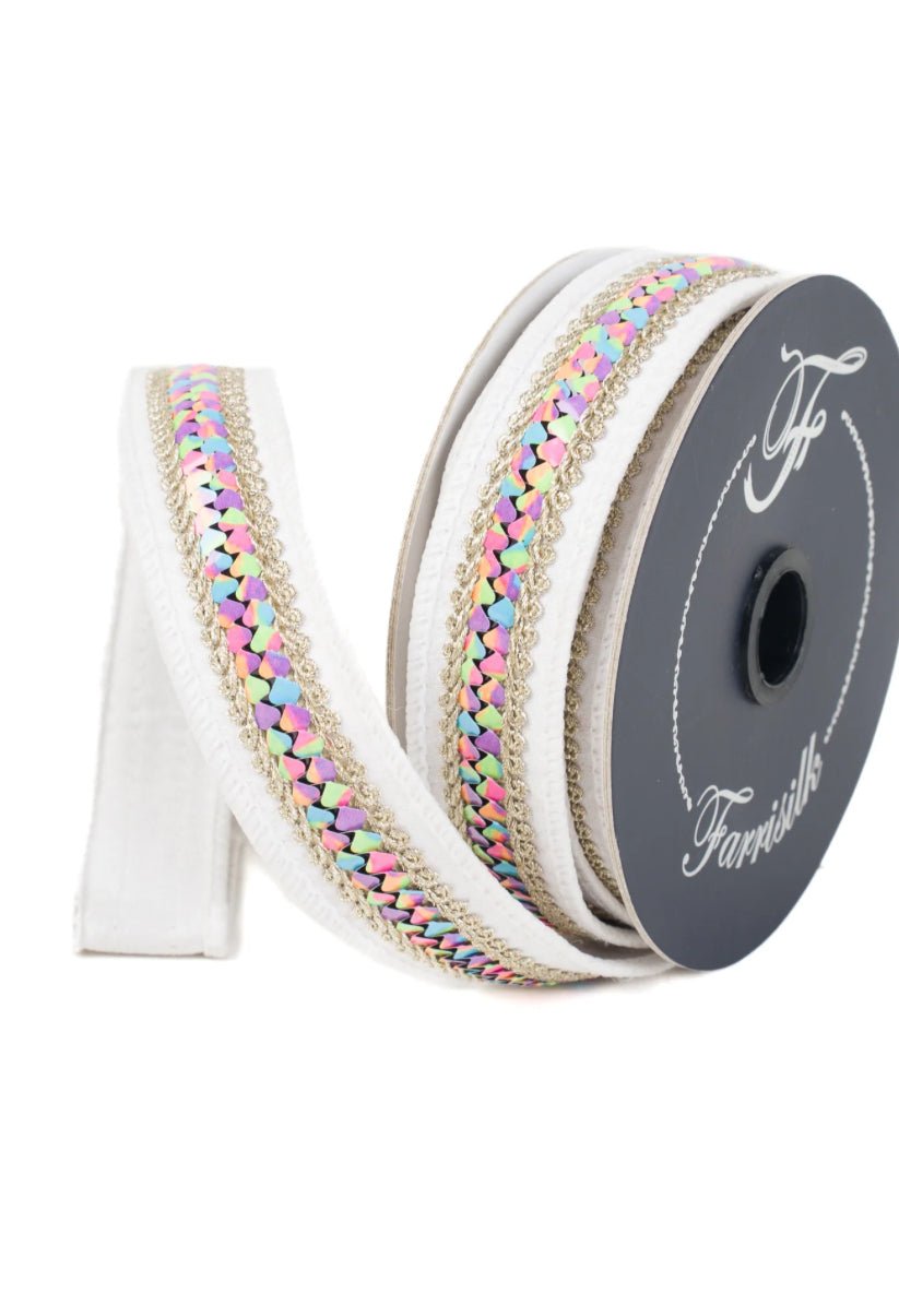 Heart Strings 1” Farrisilk Wired Ribbon - White