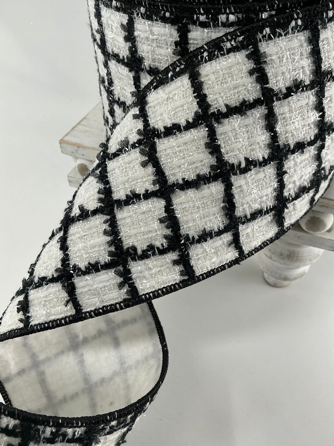 Frilly, yet refined. This Farrisilk white tweed ribbon is constructed with thick, wired edge and is made with a secondary fabric to provide shape and structure.